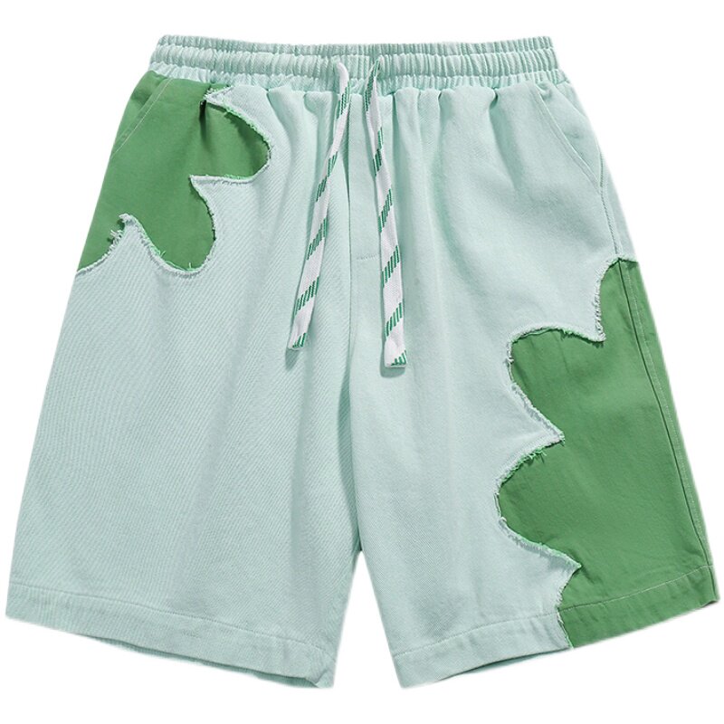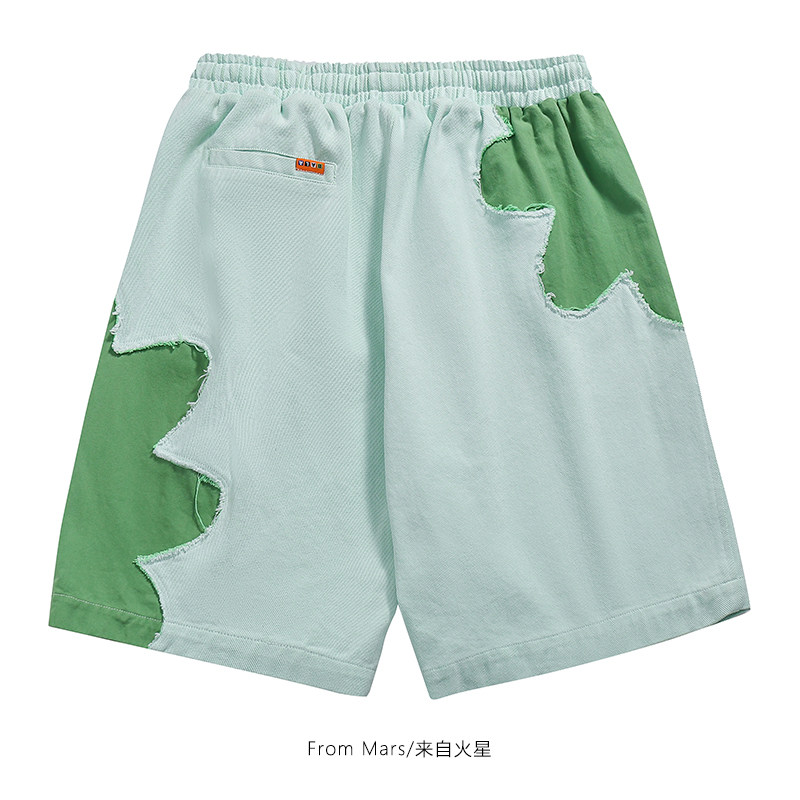 From Mars 日系原宿花朵撕裂拼接小众设计潮ins撞色百搭情侣短裤
