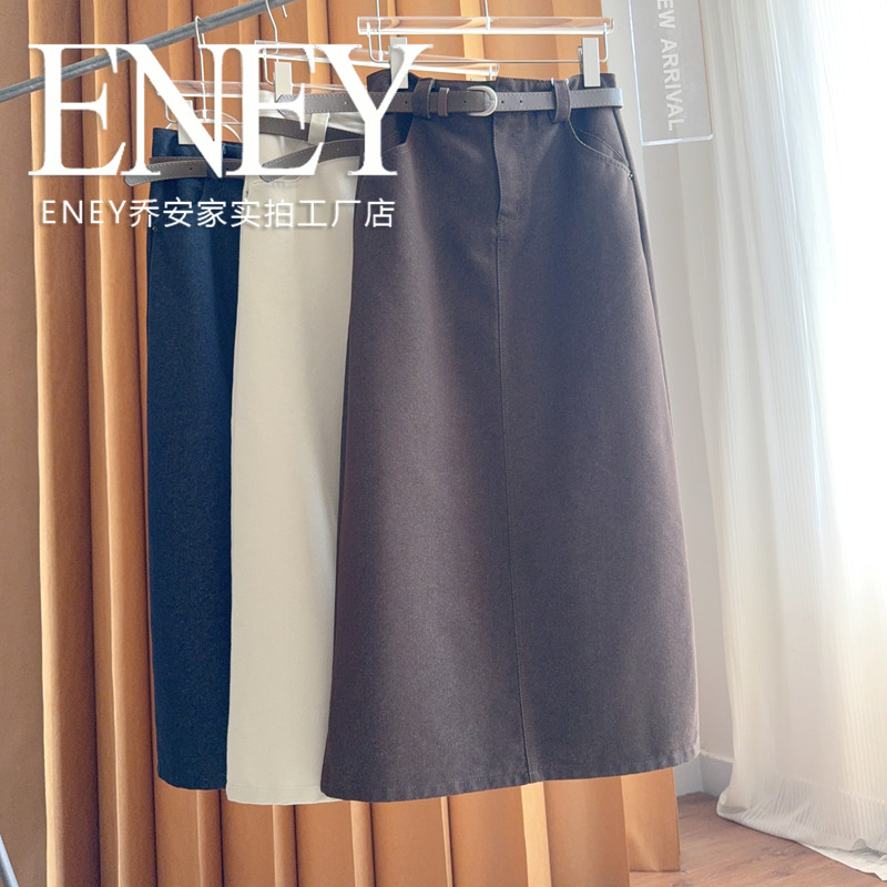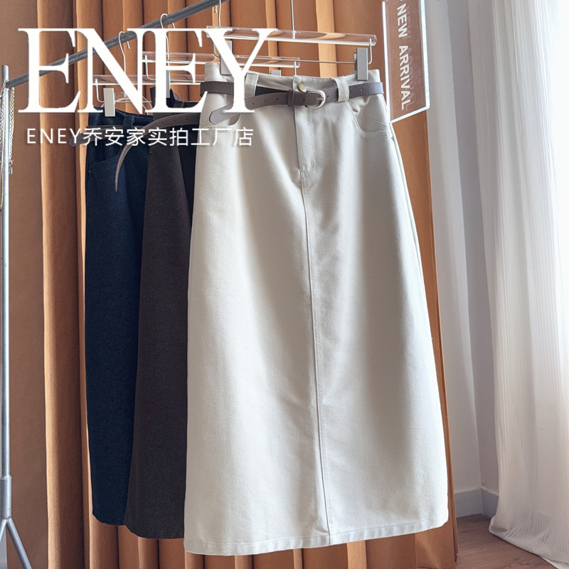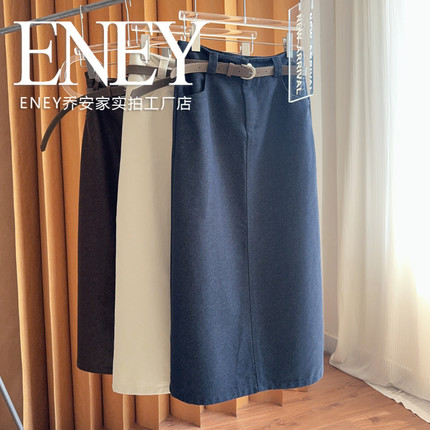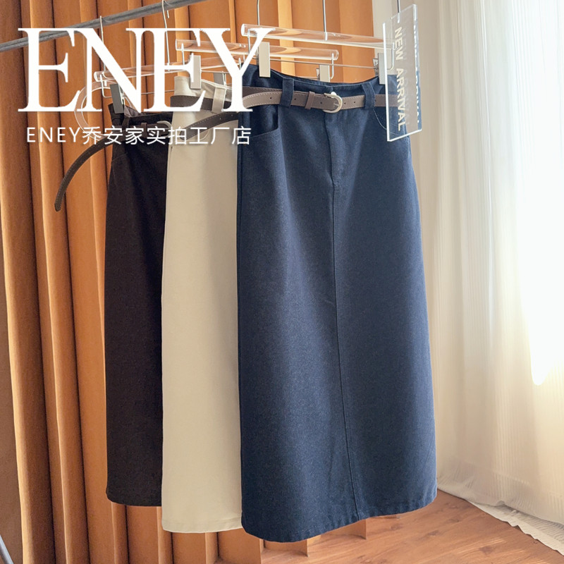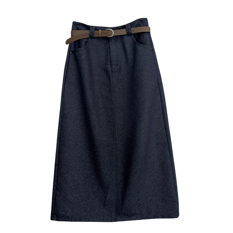 老钱风一步牛仔长裙~春秋款皮带纯色简约半身裙时尚修身气质百搭