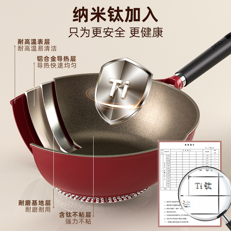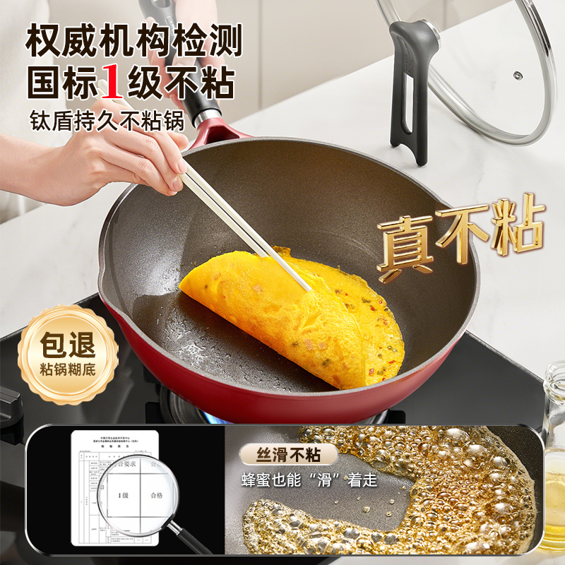 爱仕达有钛不粘锅炒锅家用炒菜锅平底不沾锅轻量电磁炉燃气灶通用