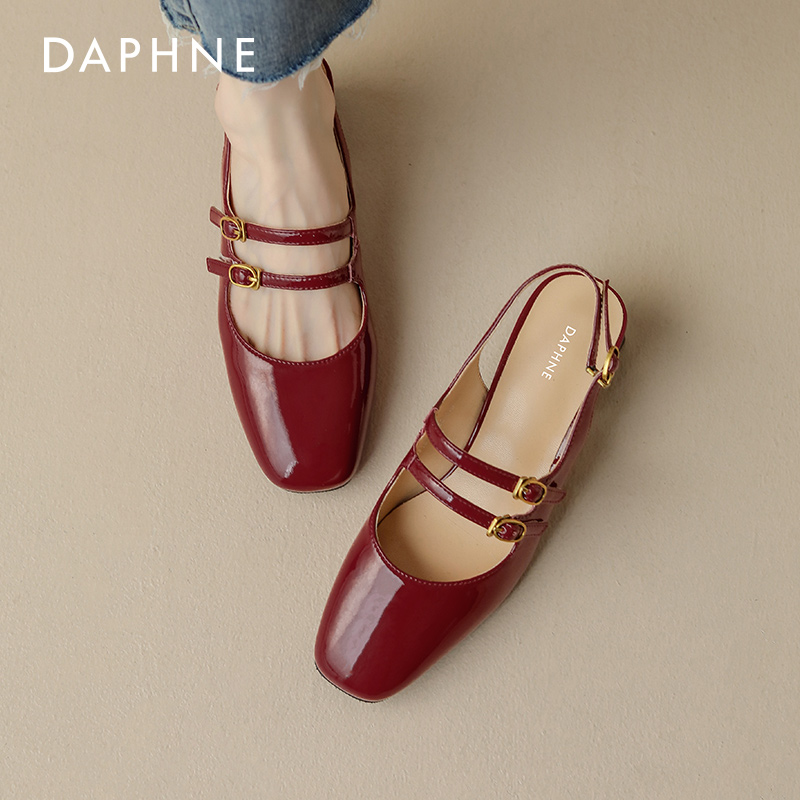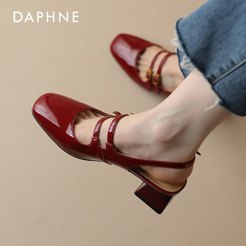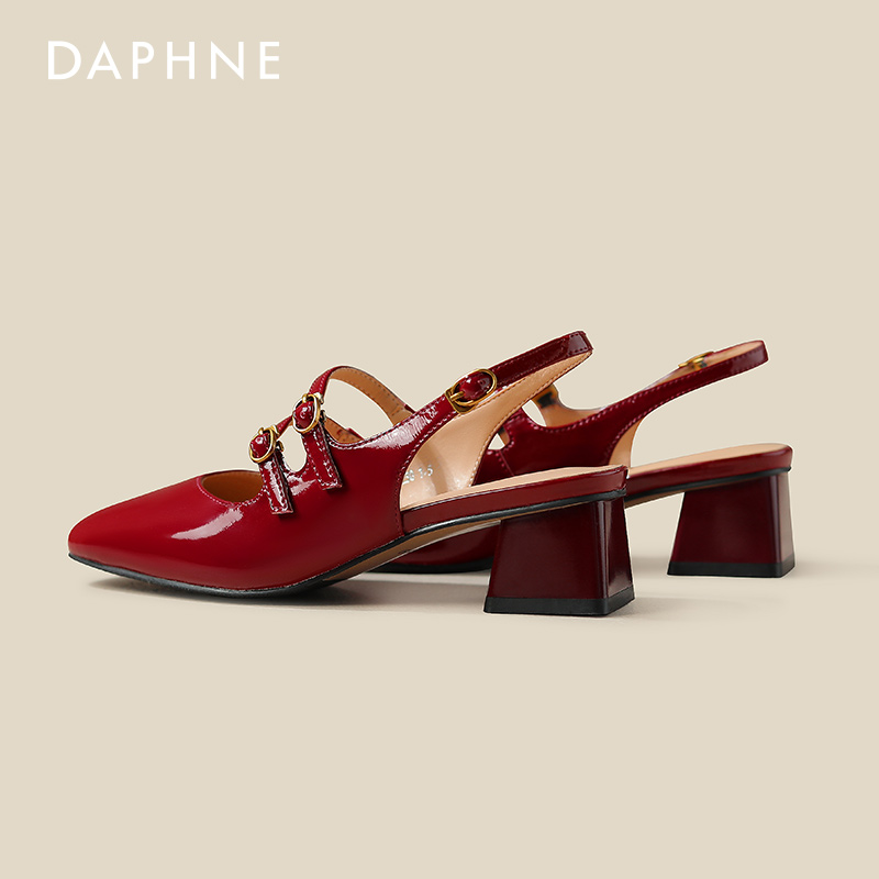 达芙妮红色凉鞋女夏季包头外穿2025新款中跟单鞋粗跟法式玛丽珍鞋