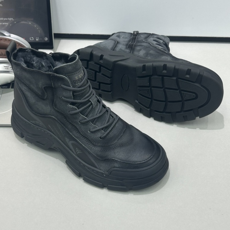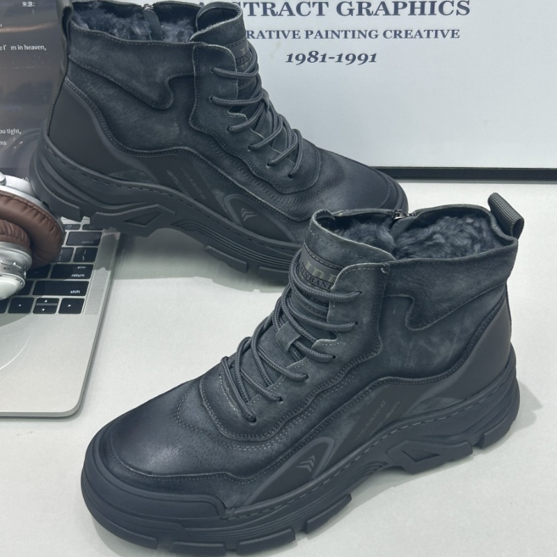 男鞋皮毛一体加绒真皮中老年保暖加厚棉鞋爸爸鞋防滑百搭登山鞋男