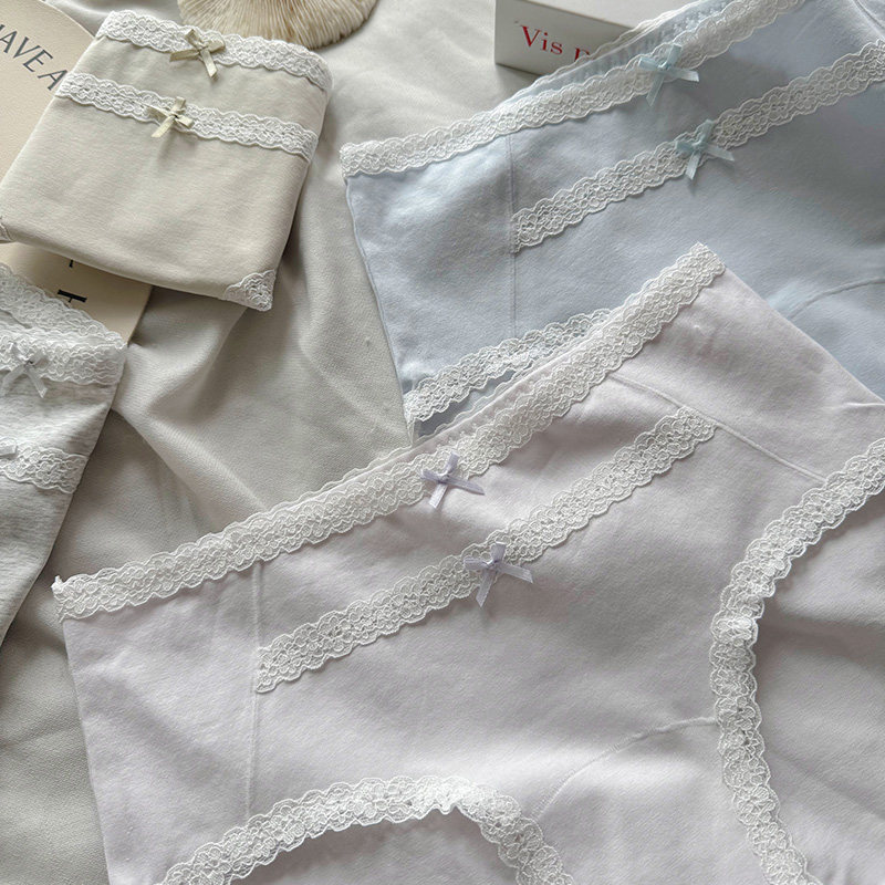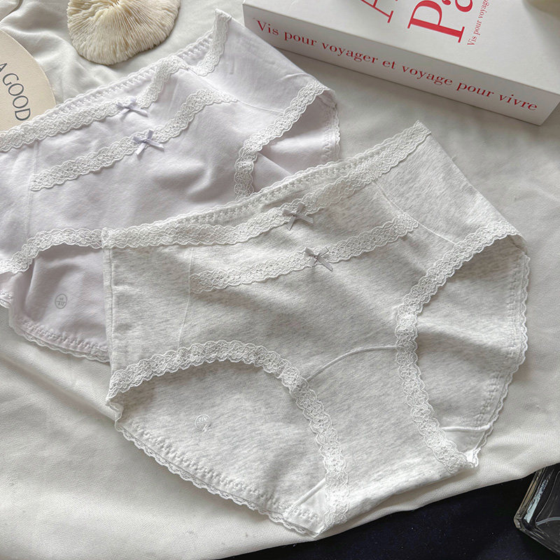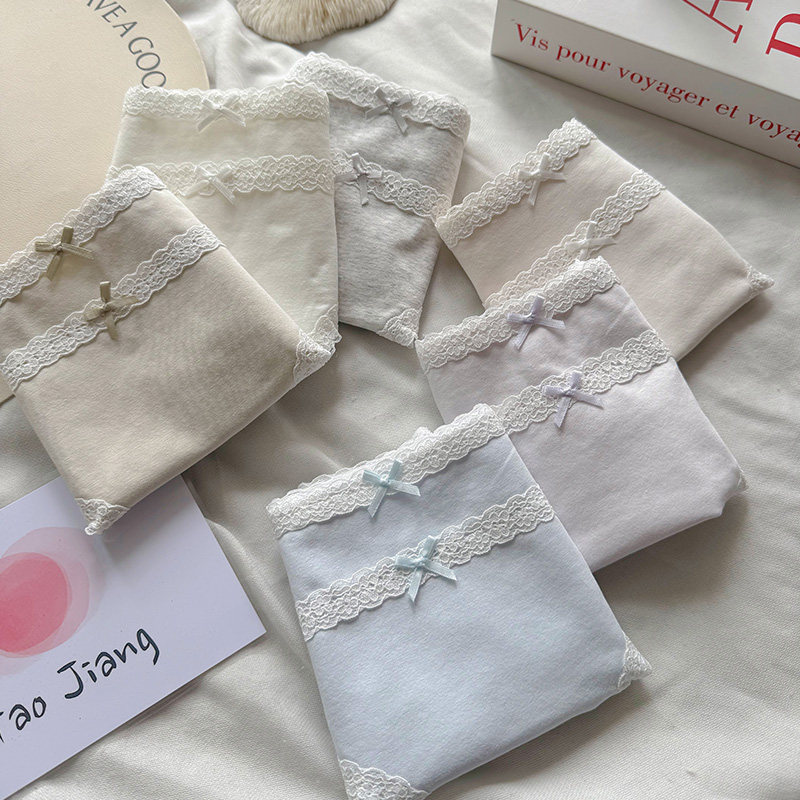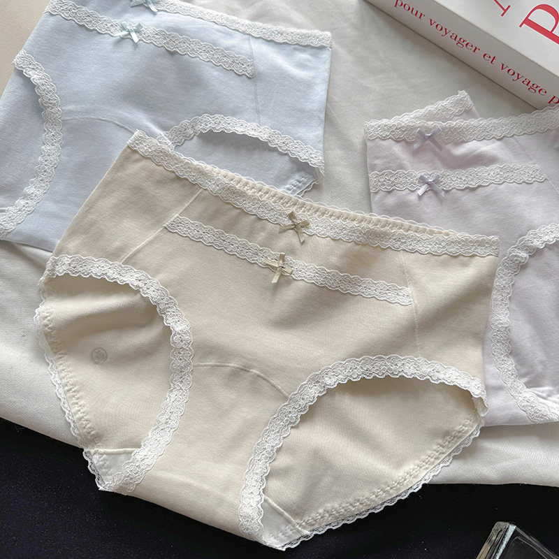 法式纯棉内裤女温柔治愈系甜美蕾丝中腰7A抑菌裆无痕包臀三角短裤