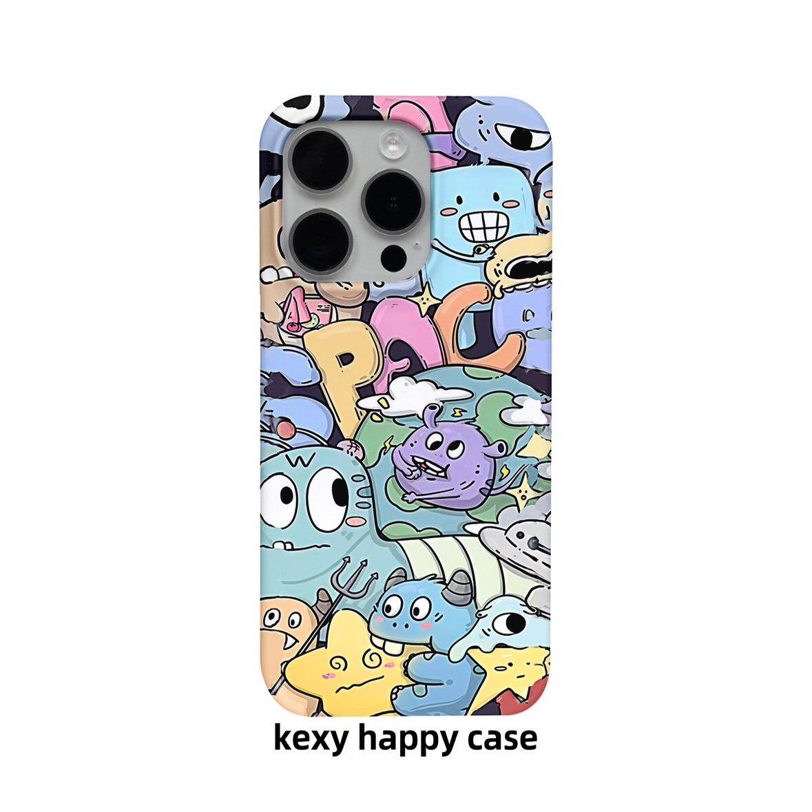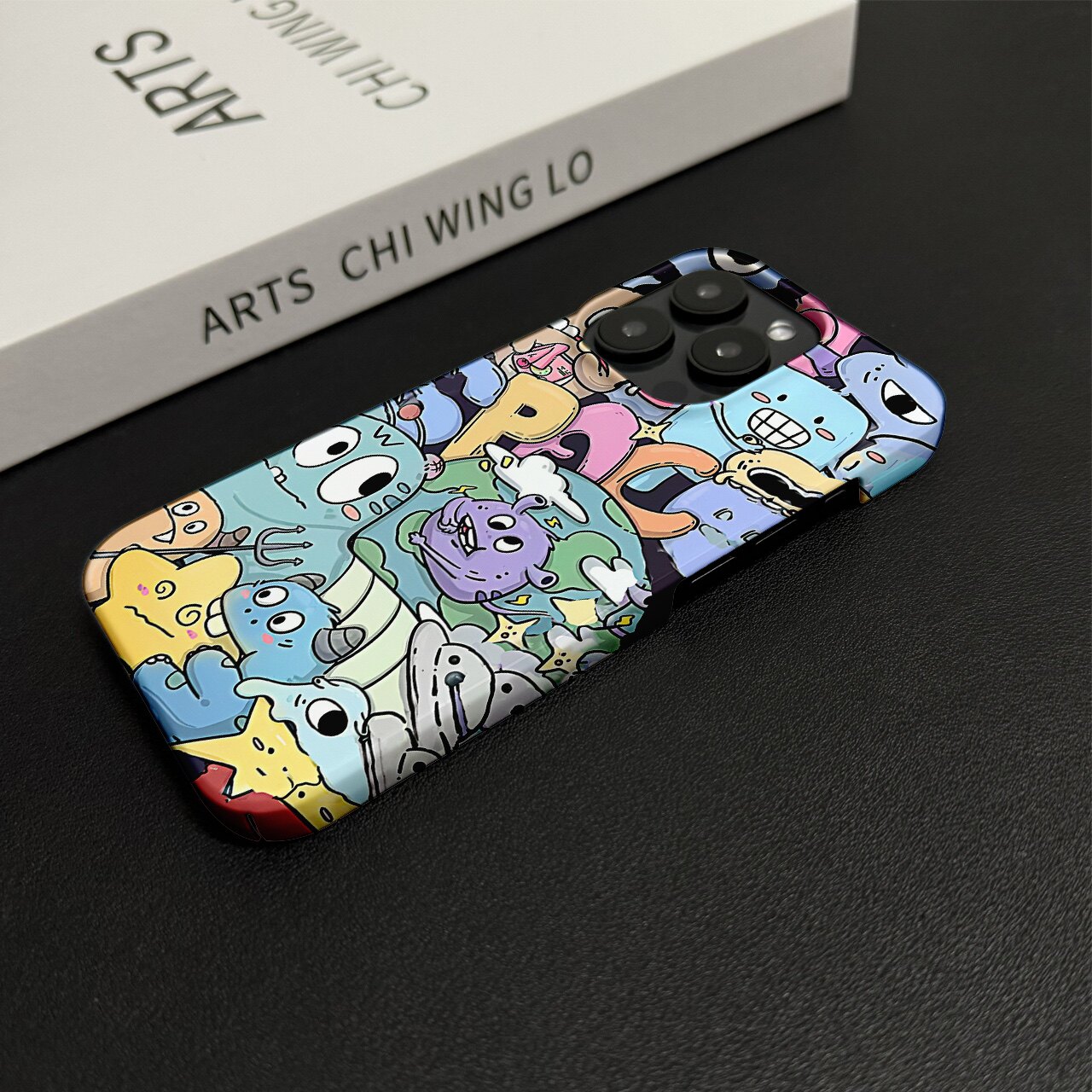 涂鸦风怪兽家族适用iPhone17promax手机壳华为mate80Pro苹果16新款小米15红米k80硬壳OPPOReno15卡通菲林软壳