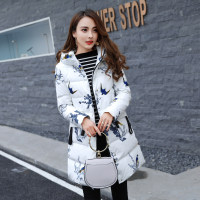 花色羽绒服女长款今年新款冬季修身女款品牌女士印花加厚白色外套