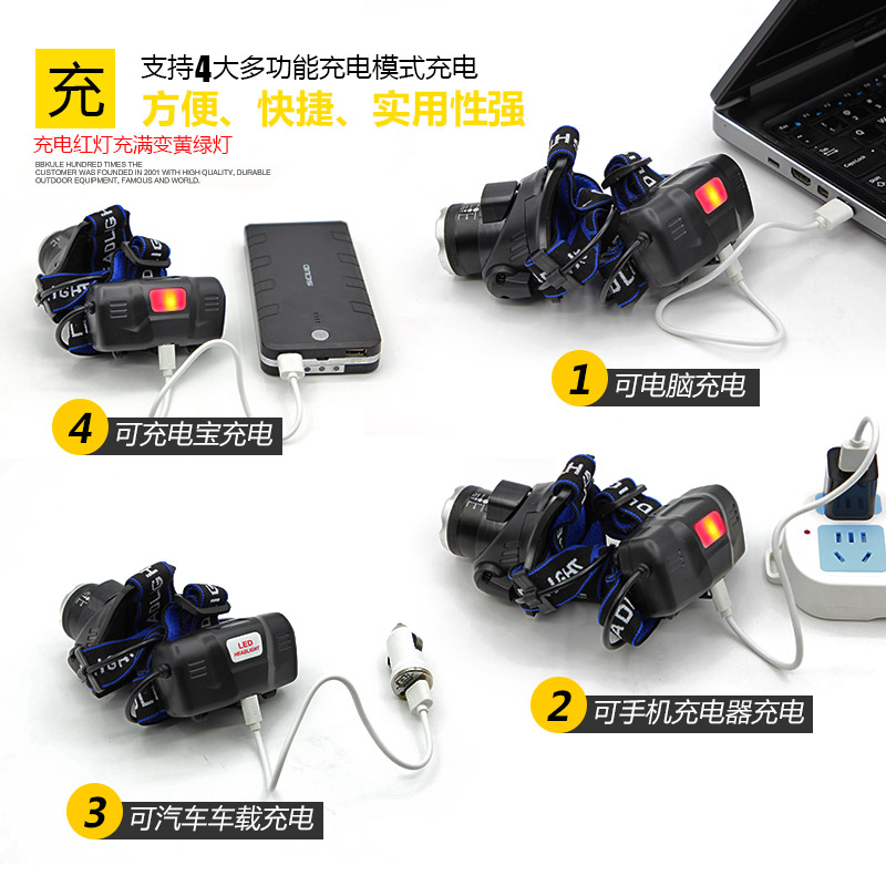 户外led感应头灯强光充电超亮变焦头戴式手电筒夜钓鱼专用矿灯小