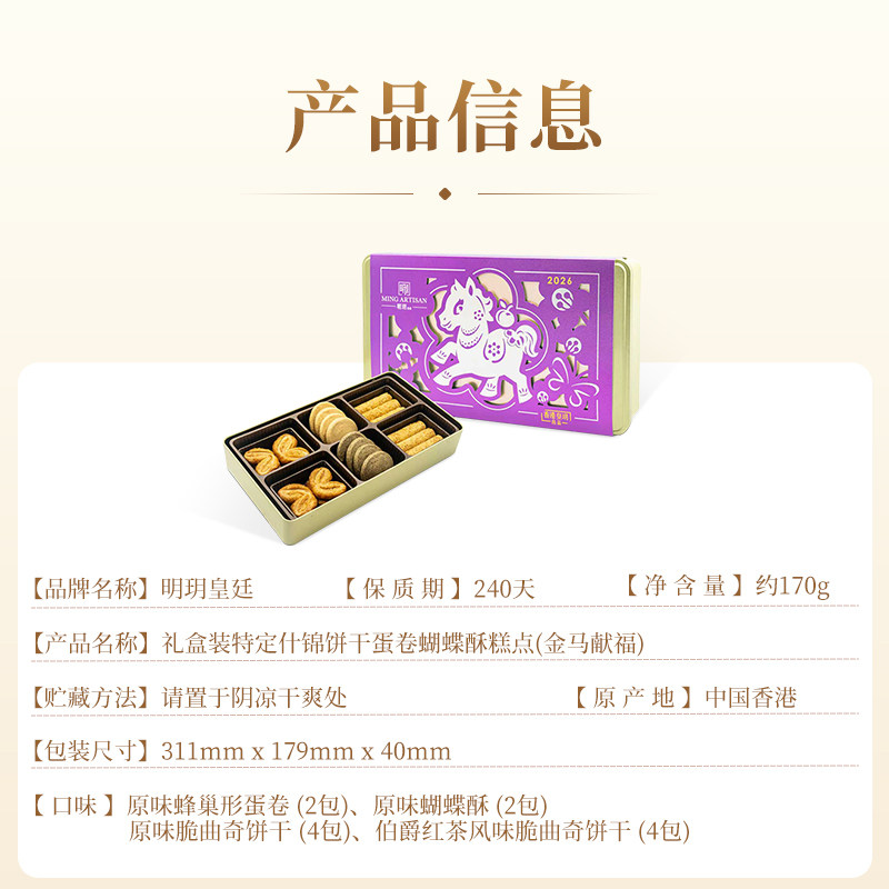 明玥皇廷金马献福饼干蛋卷蝴蝶酥糕点新年礼盒香港特产伴手礼团购