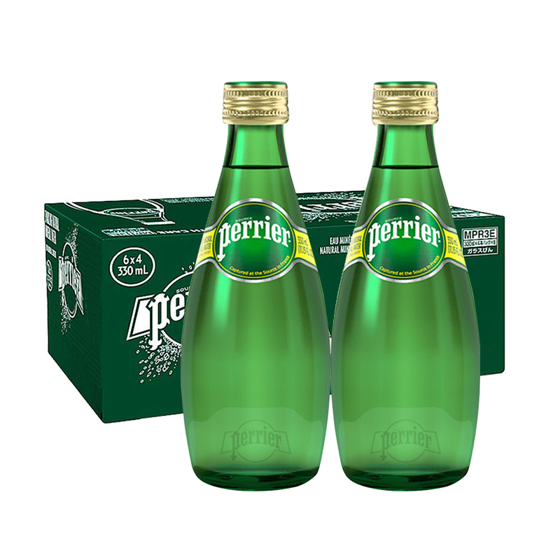 法国perrier进口巴黎水青柠味柠檬原味饮料330ml*24瓶气泡水矿泉