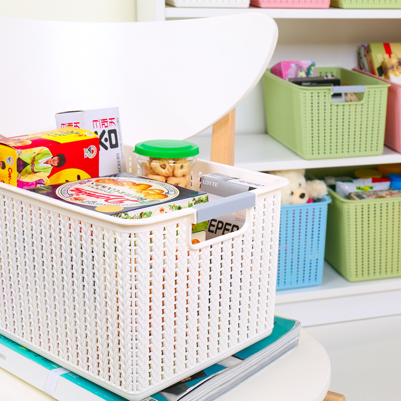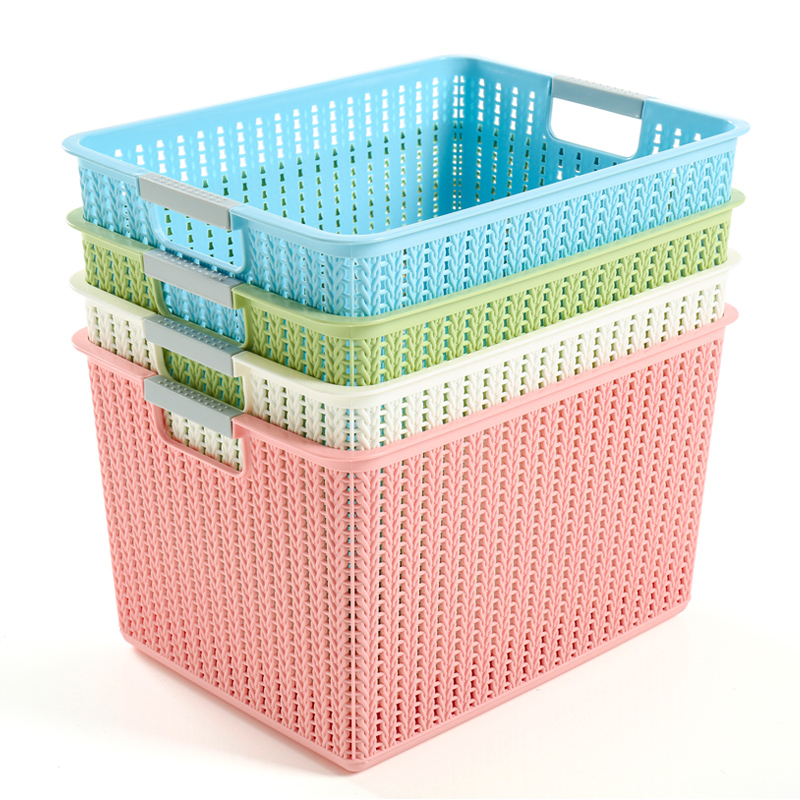 塑料收纳筐长方形收纳盒储物整理框桌面收纳篮玩具框大号藤编