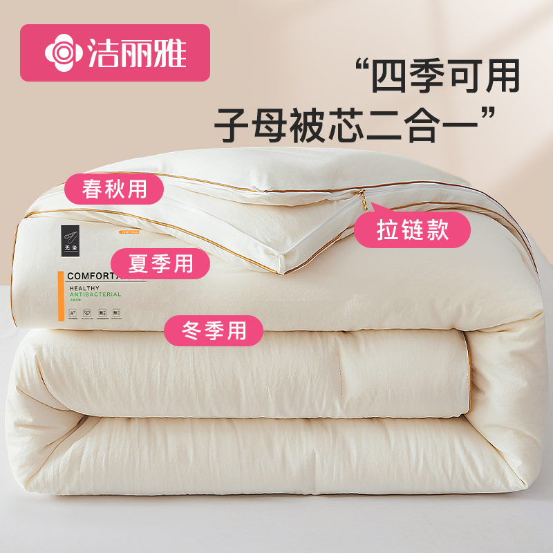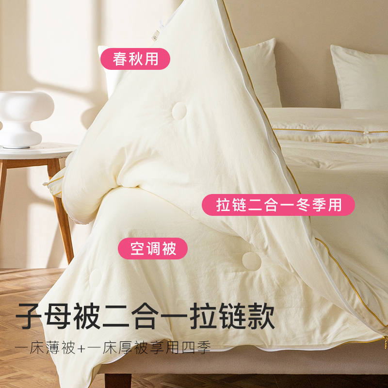 洁丽雅大豆纤维被被子棉被冬被子母被二合一拉链款保暖被芯春秋被