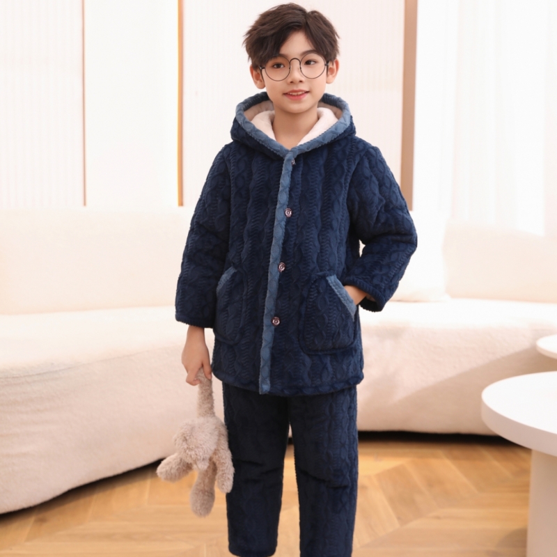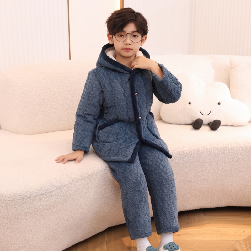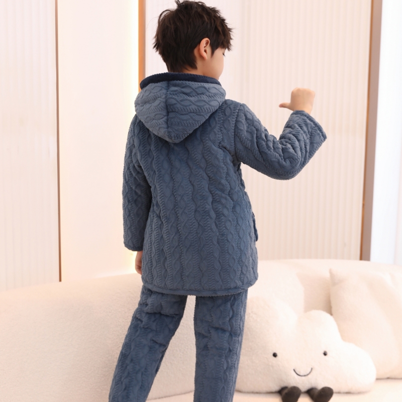儿童冬季夹棉睡衣加厚宝宝男童保暖女童珊瑚绒男孩女孩家居服套装