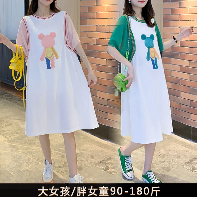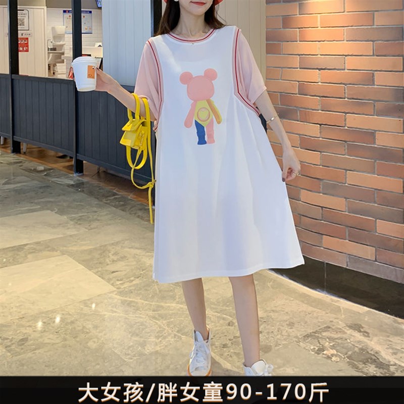 胖女孩裙子长裙加肥加大大码夏装宽松学生运动裙大童胖女童连衣裙