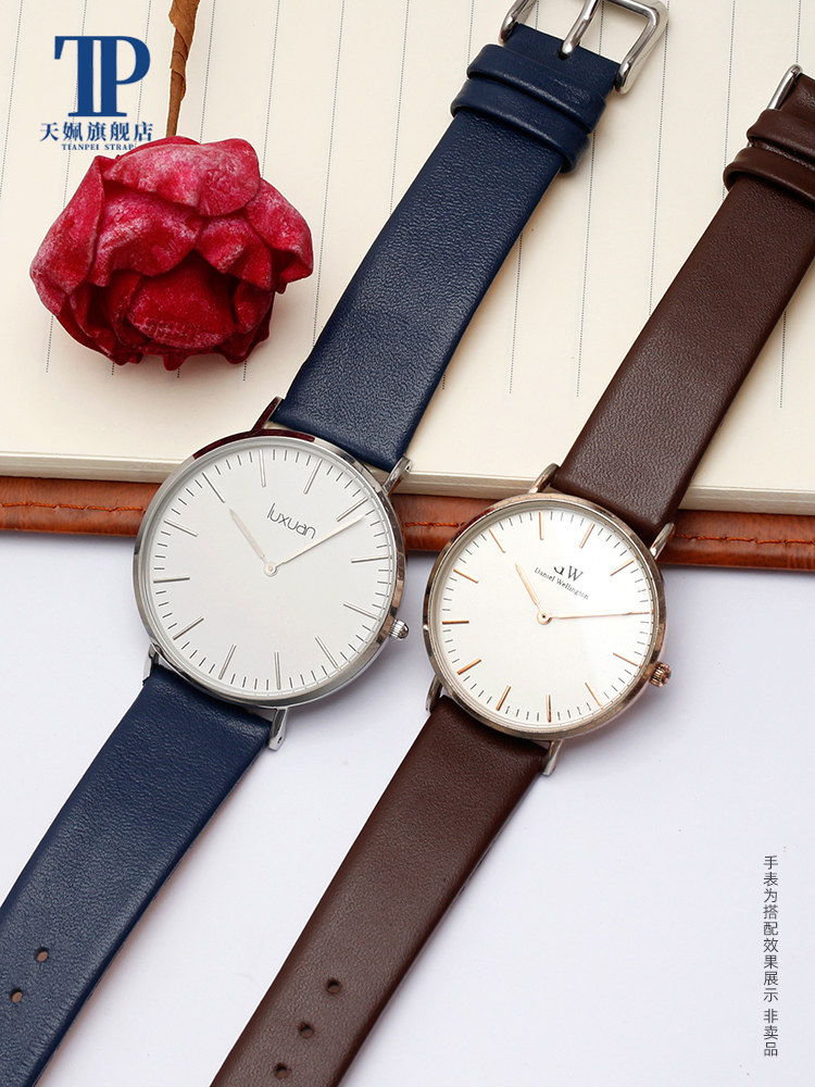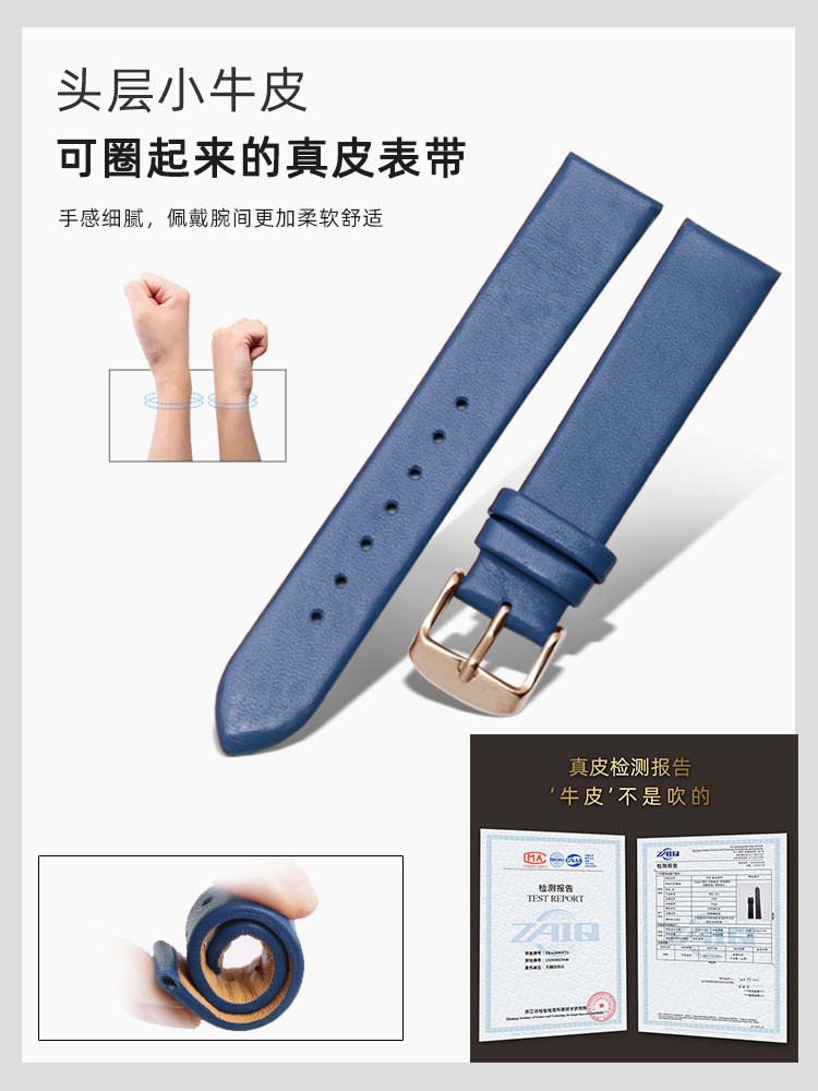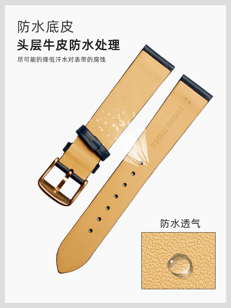 真皮手表带适配天王阿玛尼CK浪琴依波薄款柔软平纹男女表带蝴蝶扣