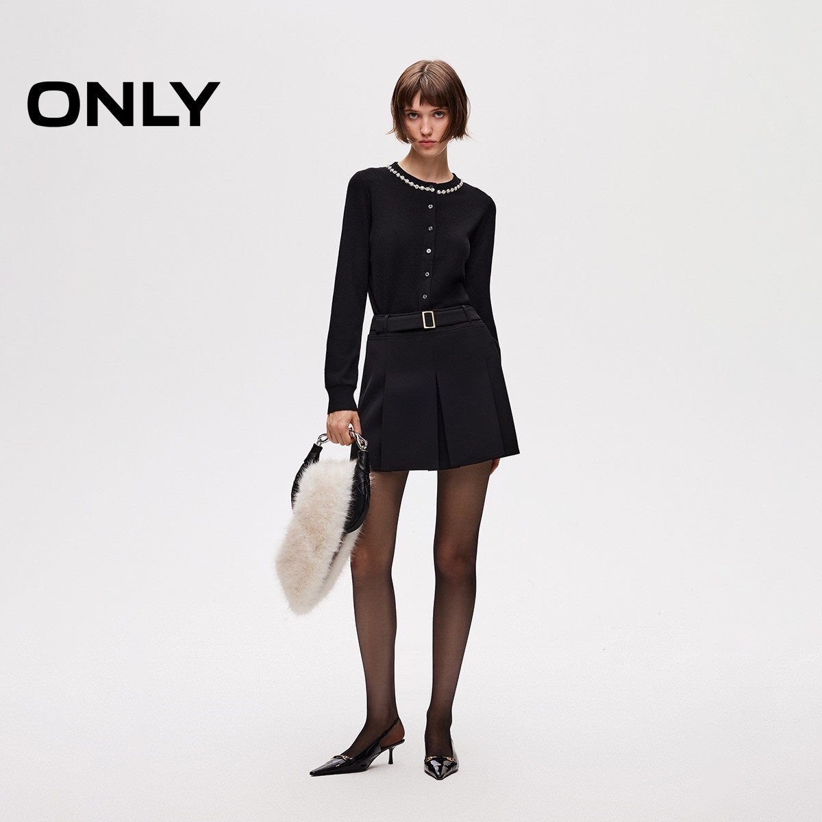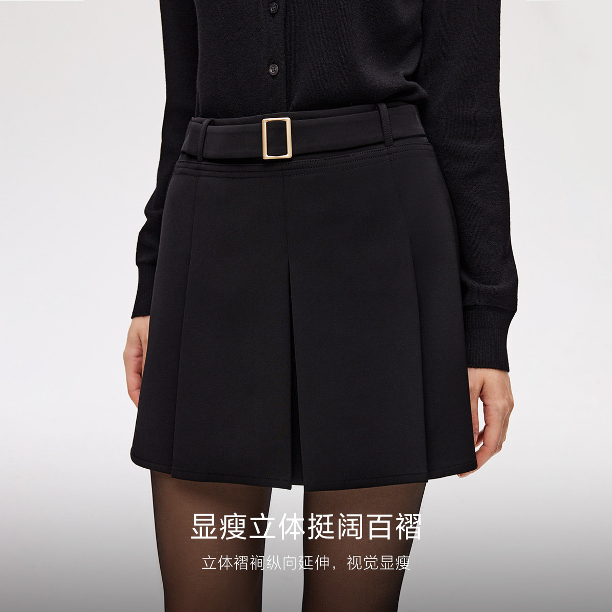 ONLY2026春季新款优雅立体挺阔质感腰带A字短裙百褶裙半身裙女