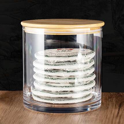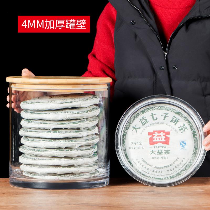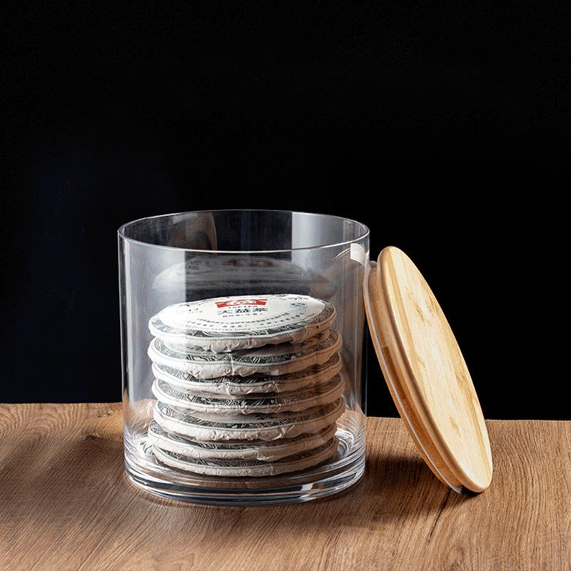 普洱茶收纳盒透明密封防潮竹木盖七饼茶叶桶茶缸大容量茶饼储存罐
