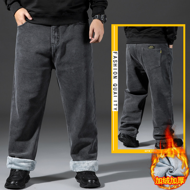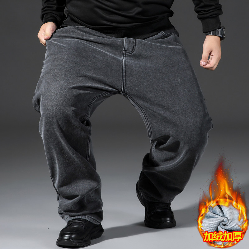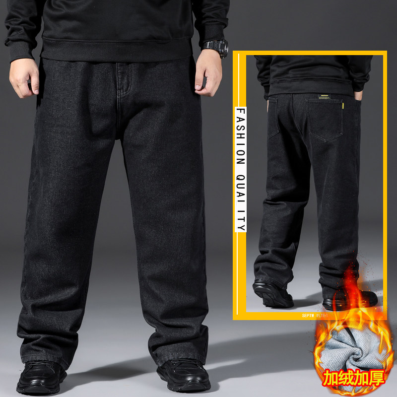 春季牛仔裤男大码宽松直筒春秋款肥佬男士高腰加肥加大高腰长裤子
