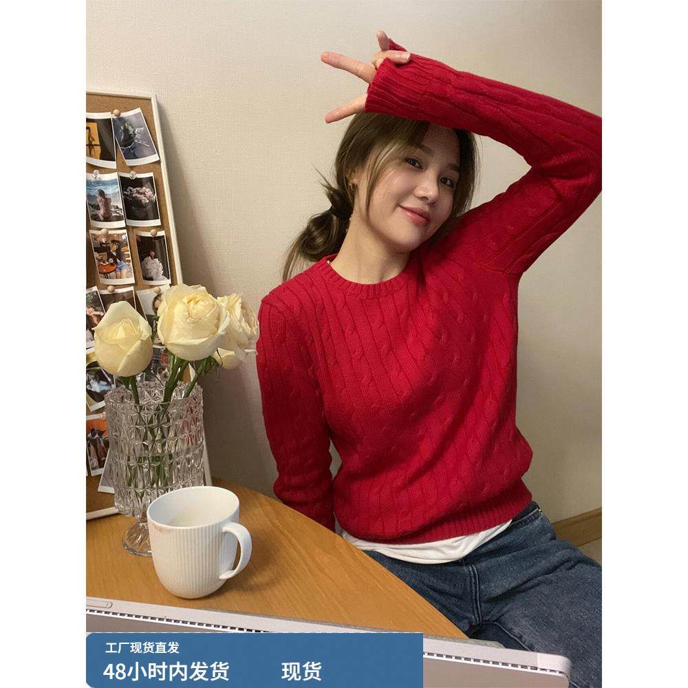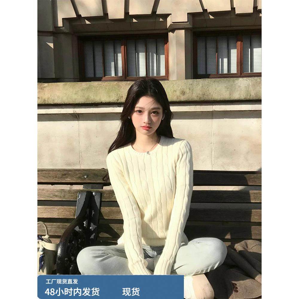 白色毛衣女麻花针织衫套头绞花上衣打底衫长袖内搭2025春秋新款