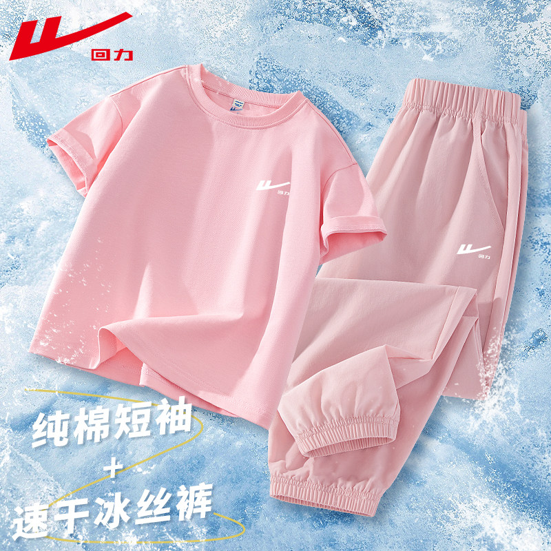 回力童装女童套装夏季小女孩薄款户外运动衣服儿童夏装短袖t恤薄