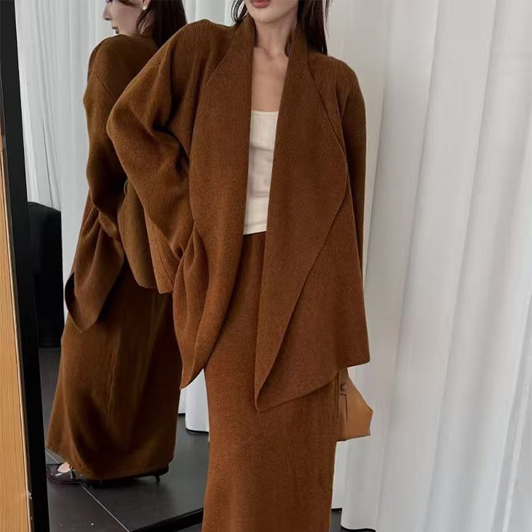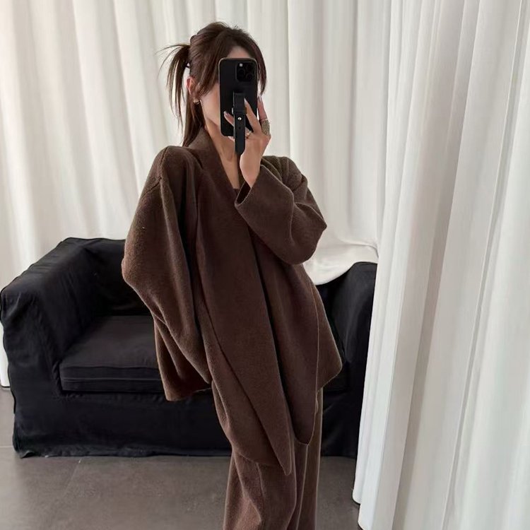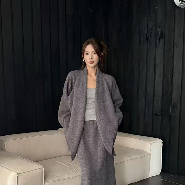 韩版针织开衫外套宽松中长款套装女2025年秋冬慵懒风设计感两件套