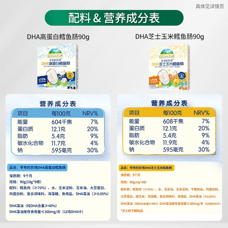 爷爷的农场鳕鱼肠儿童营养零食肉肠宝宝芝士肠益生元山楂芝士软饼