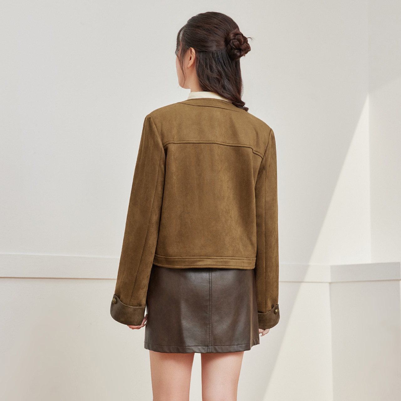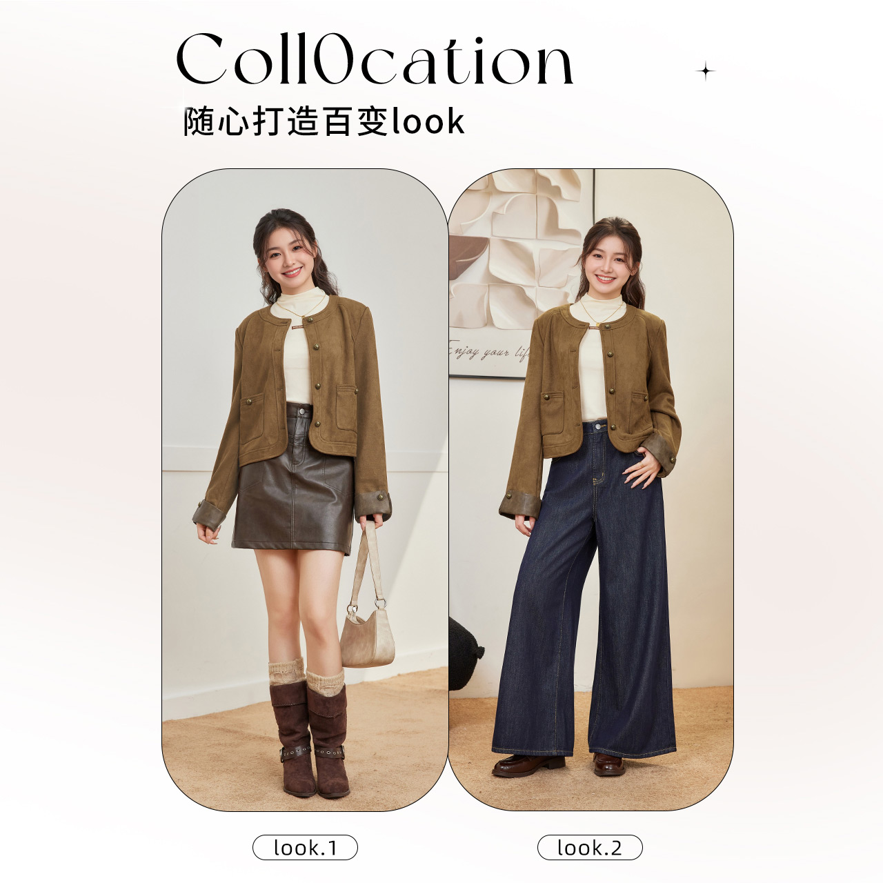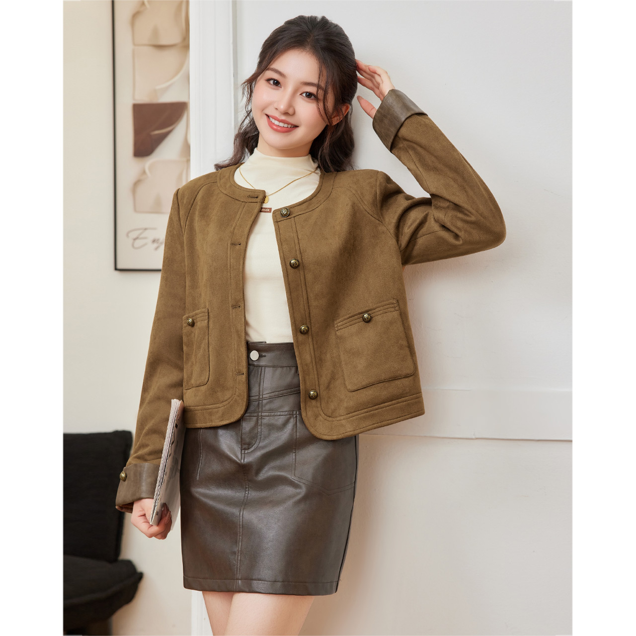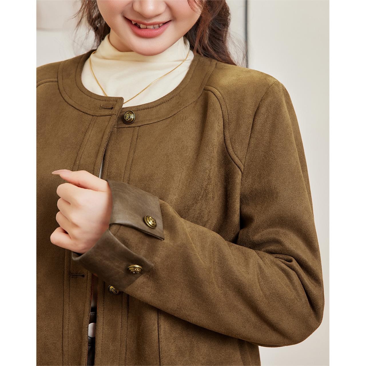 IEF/爱依服【微胖】大码女装2025秋季新款法式气质感磨砂皮外套