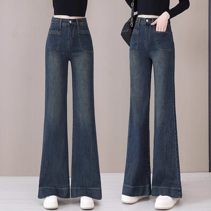 弹力阔腿微喇叭牛仔裤女2025年春秋新款高腰宽松显瘦百搭直筒长裤