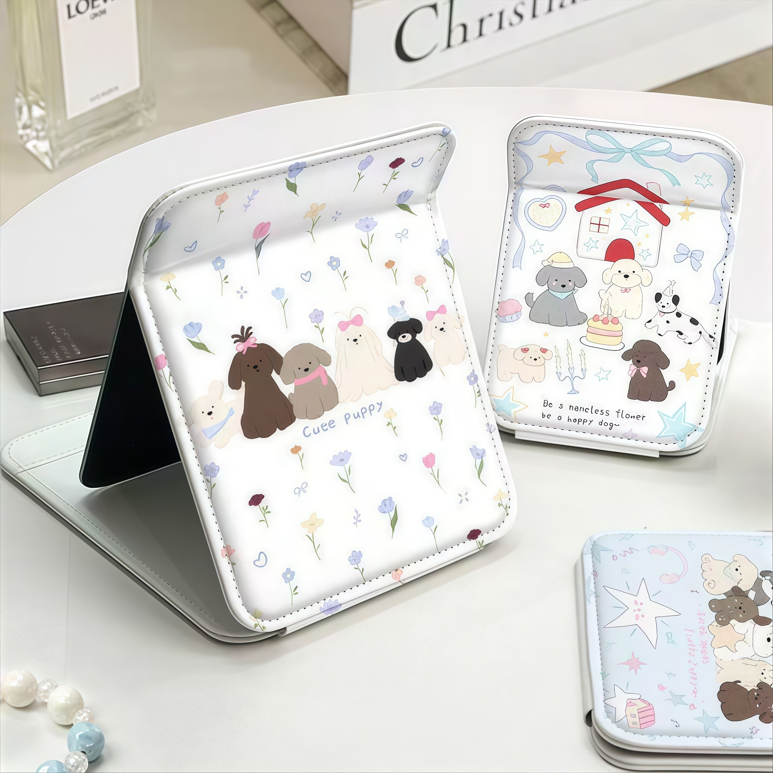 折叠镜桌面化妆镜子家用学生宿舍可爱猫咪花朵随身镜小巧便携台式