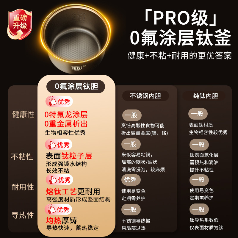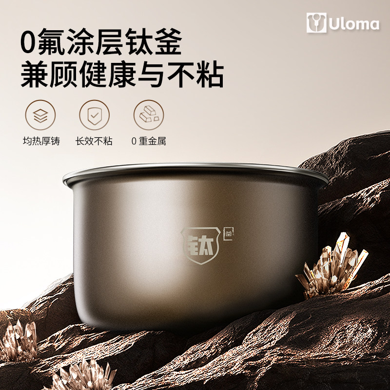 德国ULOMA电饭煲家用0氟涂层钛釜内胆L小型5电饭锅1-4人智能3预约