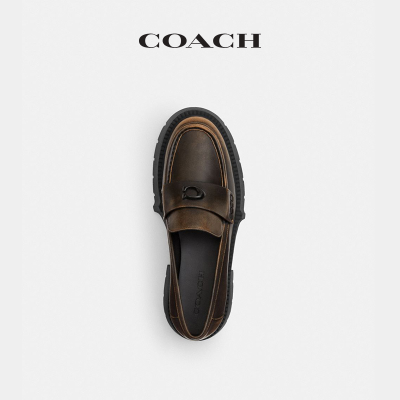 COACH/蔻驰女士复古挚爱皮革LEAH厚底乐福鞋厚底鞋子舒适休闲通勤