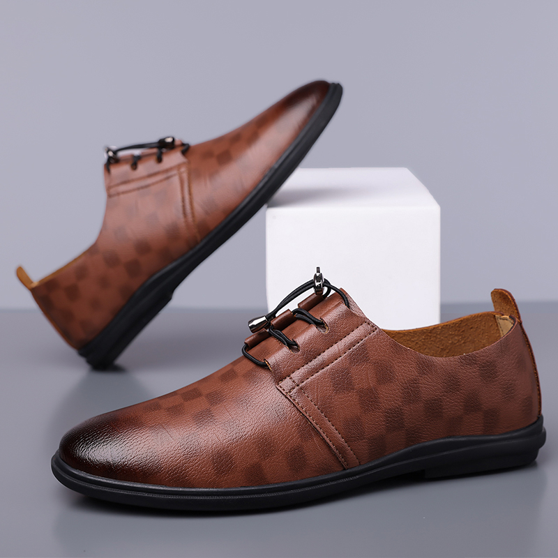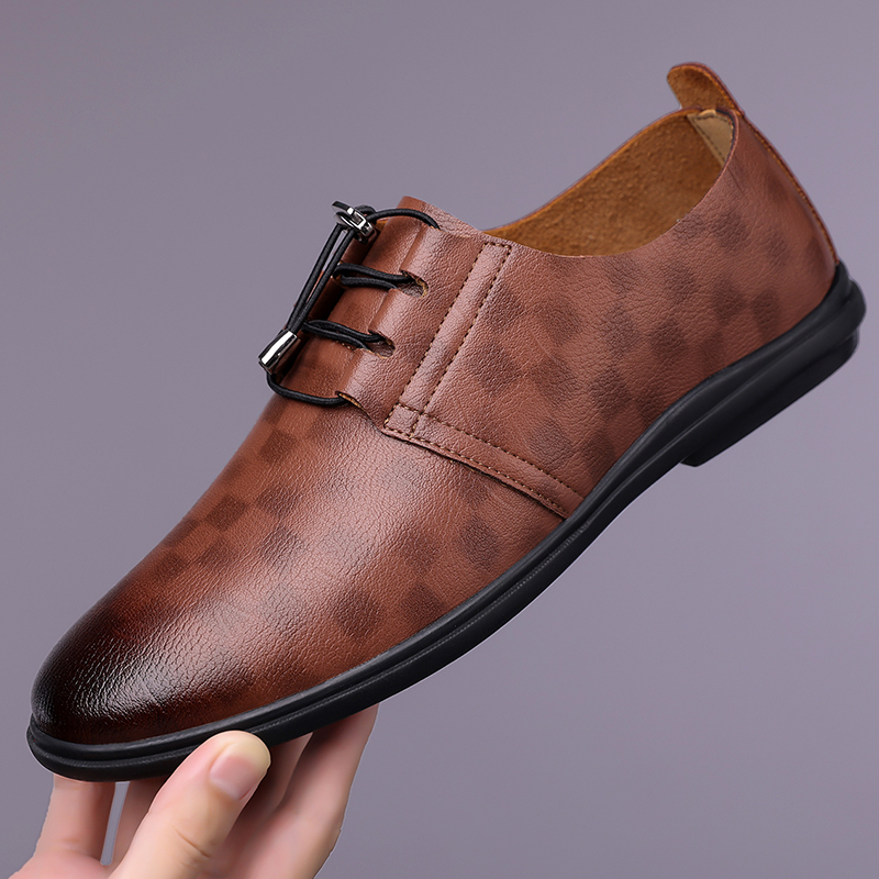 皮鞋男秋季新款真皮透气商务休闲鞋一脚蹬软底舒适驾车男士豆豆鞋