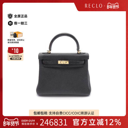 中古Hermes爱马仕女包A级95新Kelly 25凯莉25牛皮手提包黑色RECLO