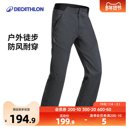 迪卡侬儿童户外徒步登山长裤秋季男童软壳运动裤耐磨防风防水KIDC