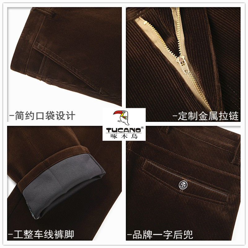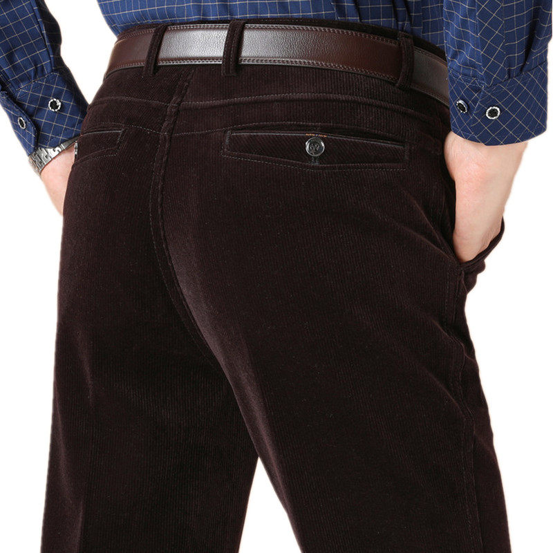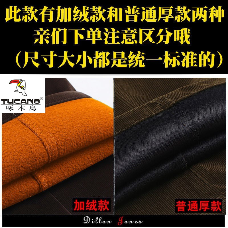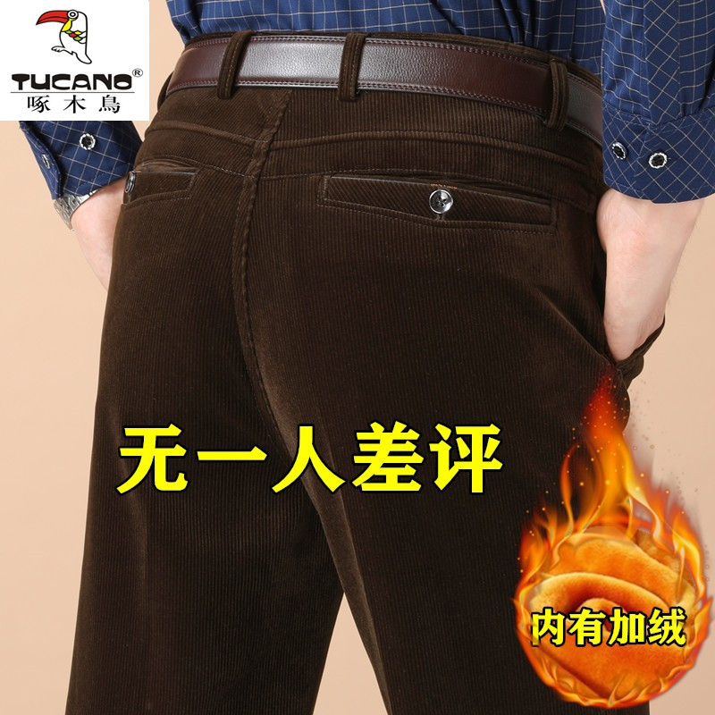 啄木鸟中老年灯芯绒男裤加绒加厚条绒裤休闲裤高腰直筒宽松爸爸装