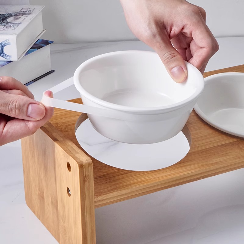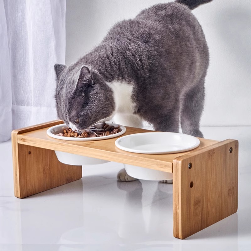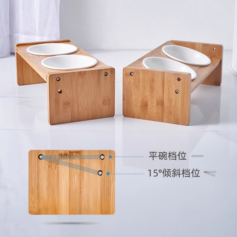 hocc竹架可调节双碗陶瓷狗碗保护颈椎倾斜狗盆宠物碗猫碗宠物用品