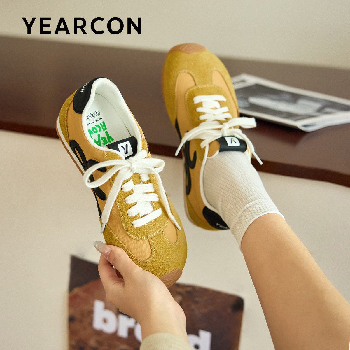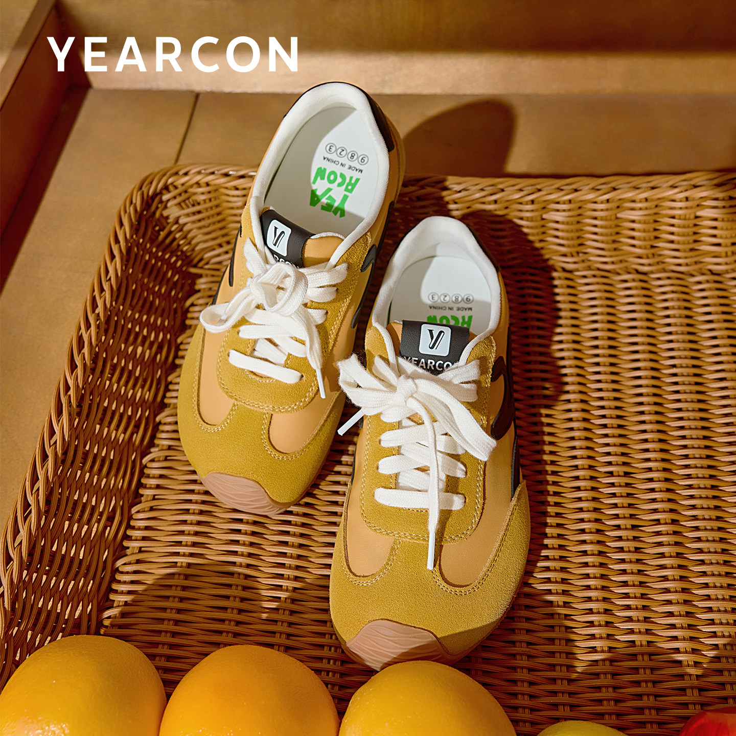 意尔康真皮德训鞋女2026春秋款黄色软底透气阿甘鞋歪头休闲运动鞋