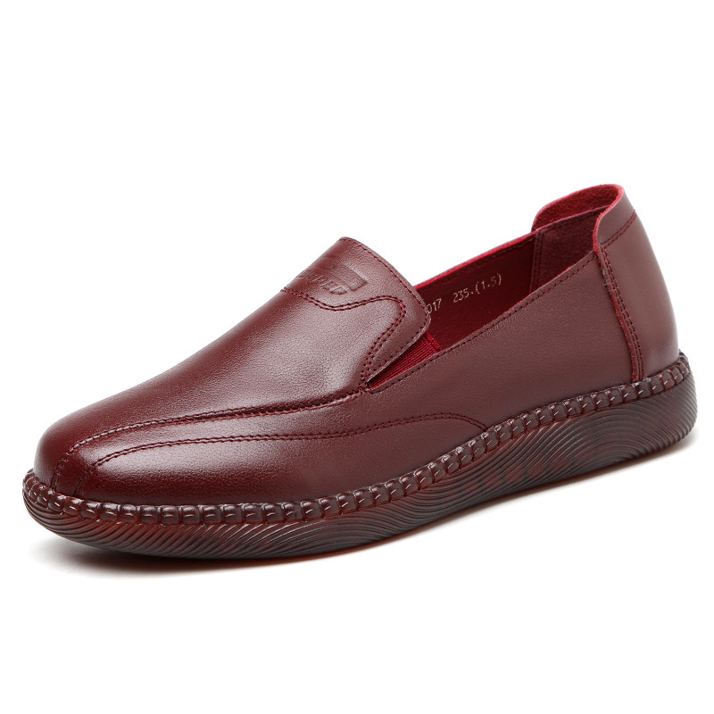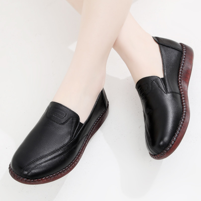软皮牛筋底妈妈鞋单鞋平底皮鞋