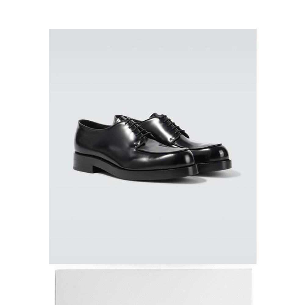 香港直邮Prada 普拉达 男士 绒毛皮质德比鞋 black黑色 舒适时尚