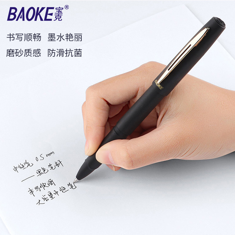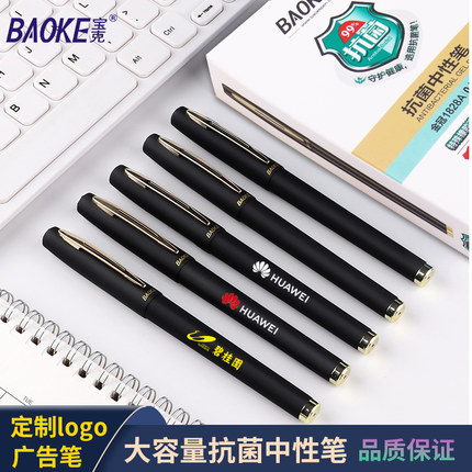 宝克大容量抗菌中性笔定制logo蓝黑色学生练字0.5mm/0.7mm/1.0mm子弹头红色教师磨砂办公笔签字笔