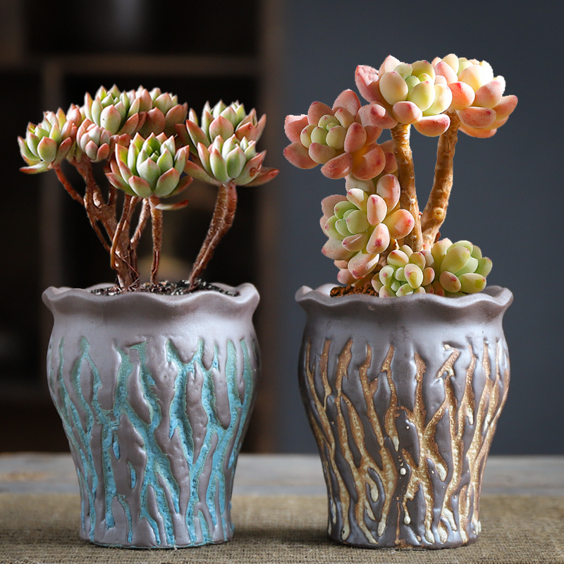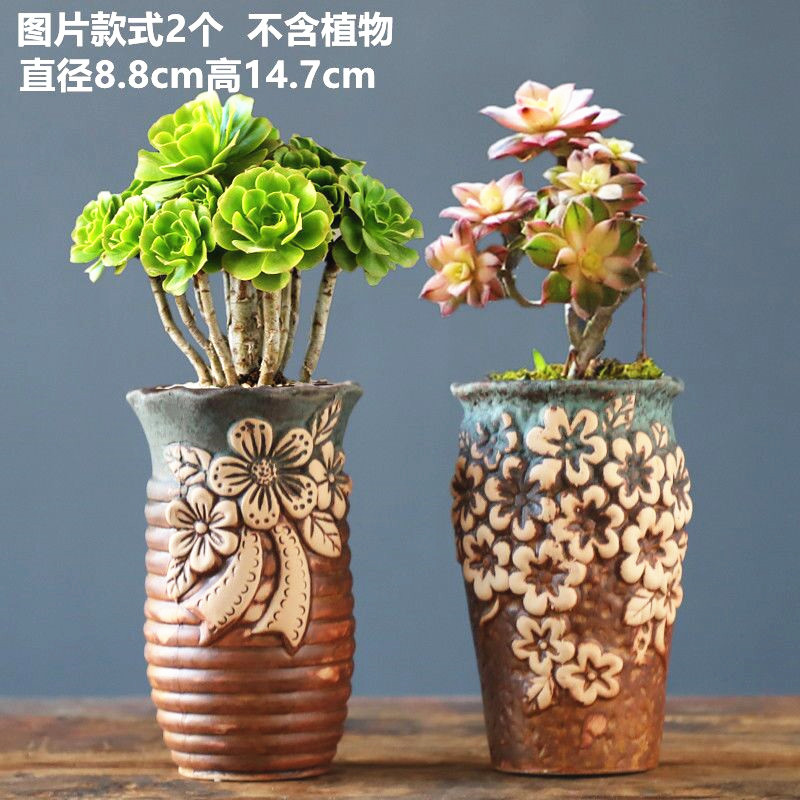粗陶多肉植物陶瓷花盆素烧复古韩式手绘肉肉老桩简约清新透气室内