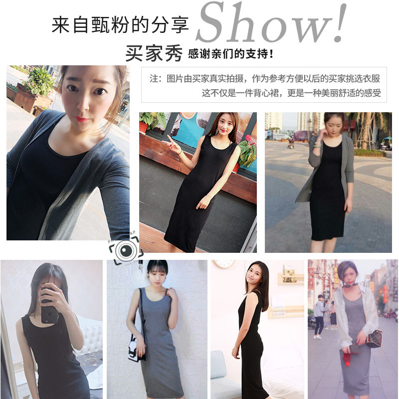黑色吊带背心连衣裙女夏季外穿中长款内搭螺纹棉质弹力无袖打底裙