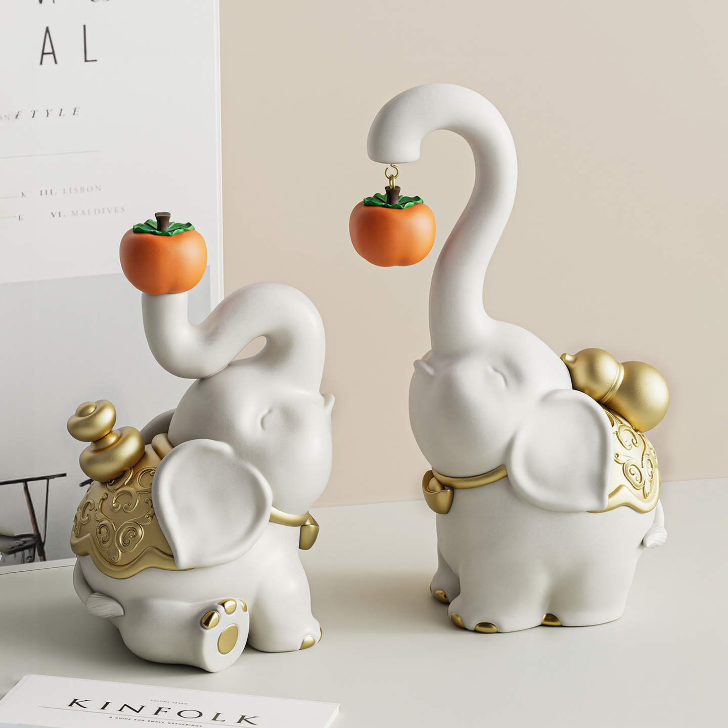 柿柿如意大象电视柜装饰摆件轻奢高档寓意好客厅招财乔迁新居礼品