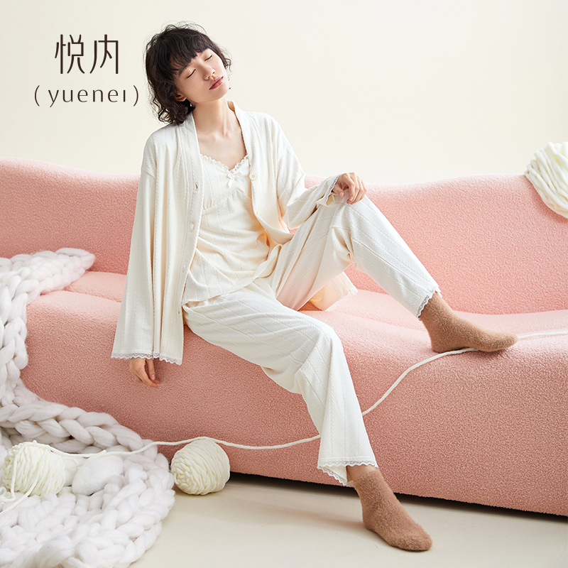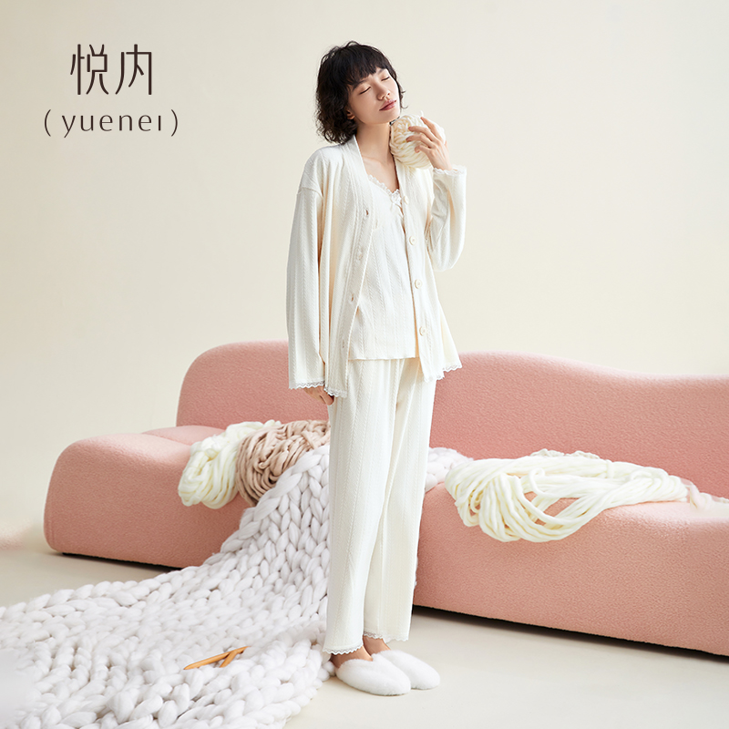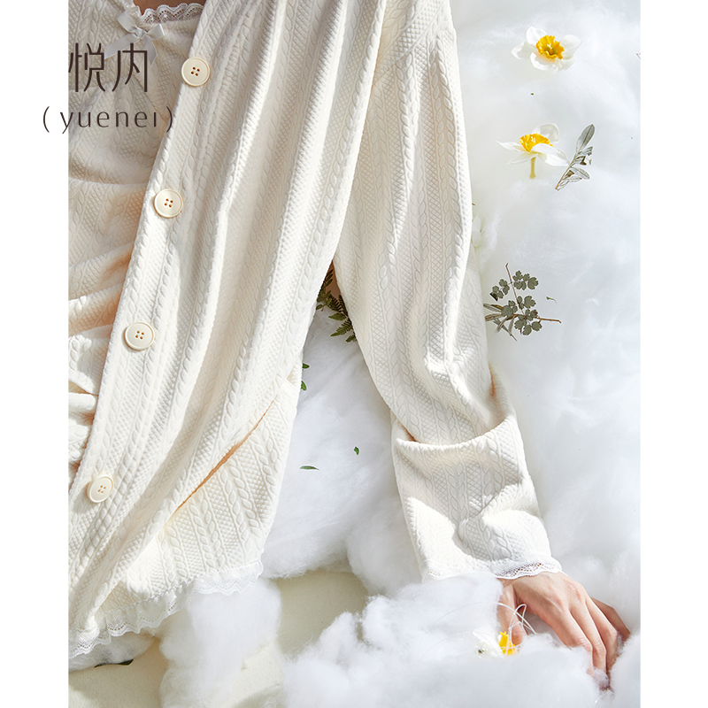 睡衣女秋冬季冬款海岛绒加厚加绒珊瑚绒带胸垫春秋纯欲风三件套装