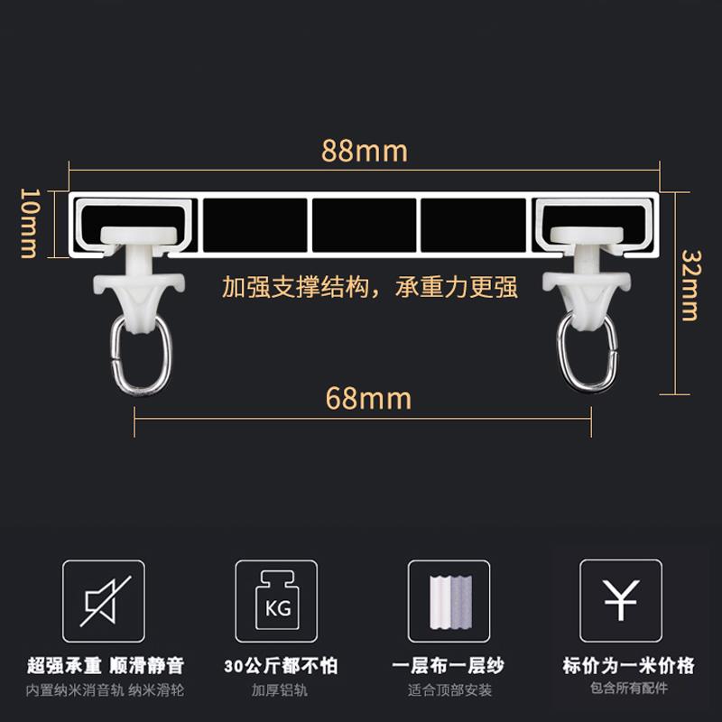 尚格连体窗帘轨道双轨超薄简约滑道铝合金静音杆盒子免打孔内开窗
