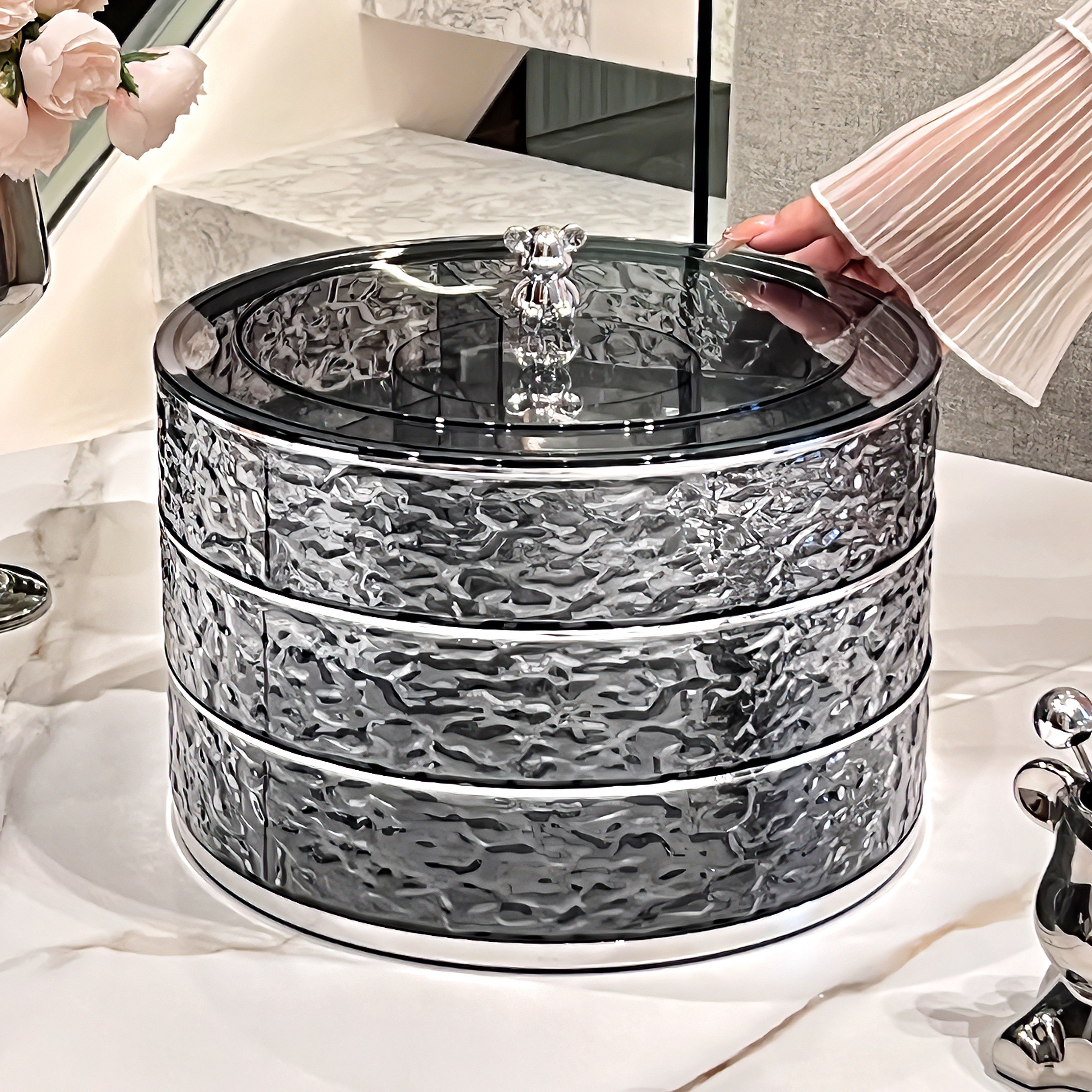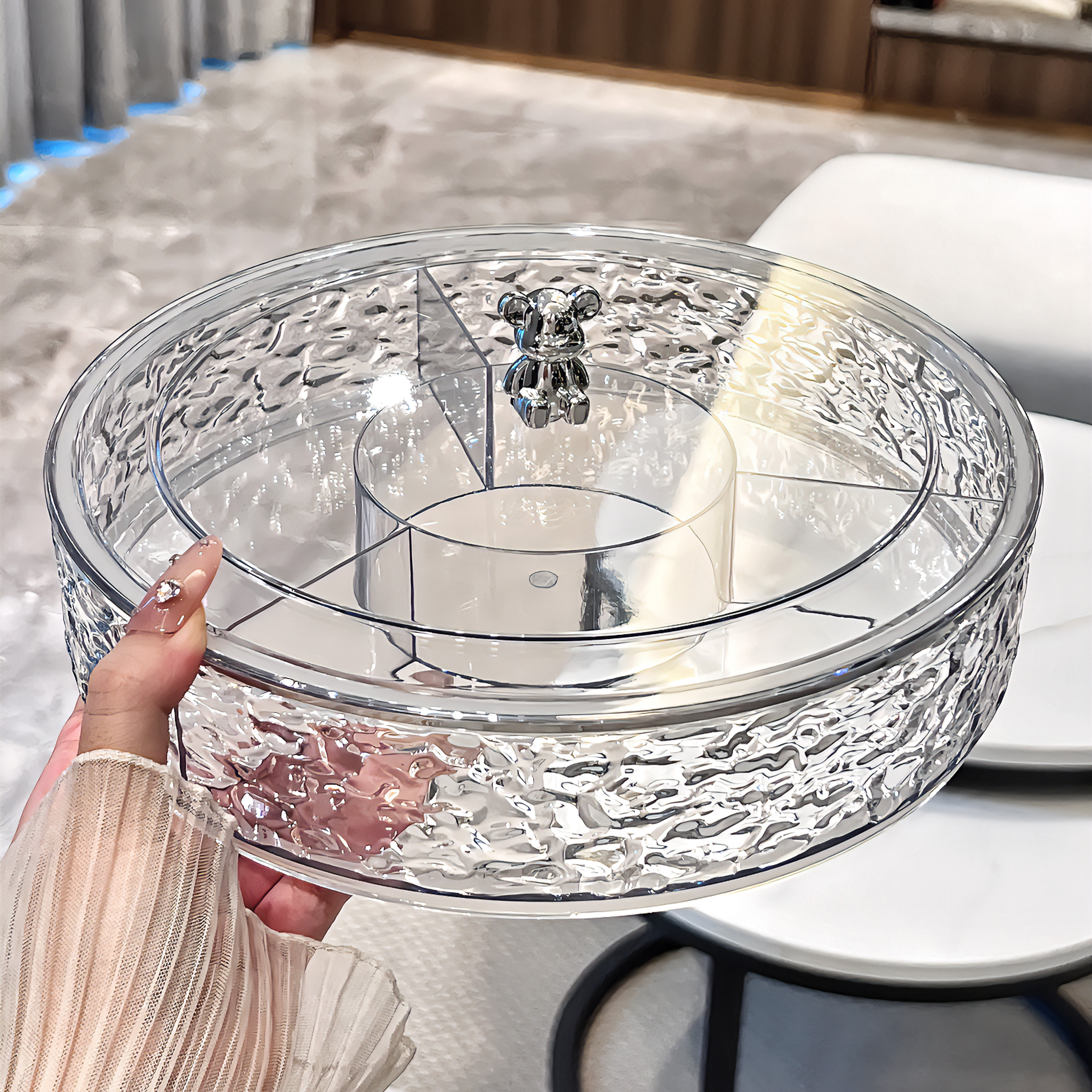 轻奢高档水果盘客厅家用茶几旋转果盘零食摆放盘糖果盘干果收纳盒