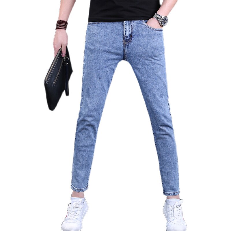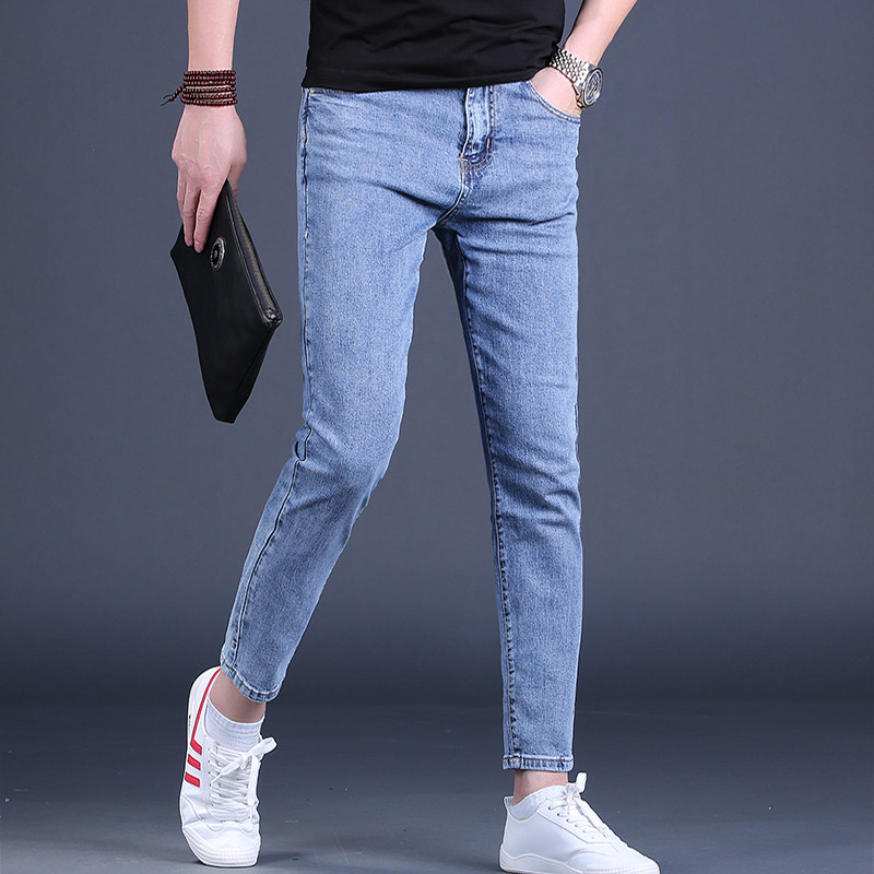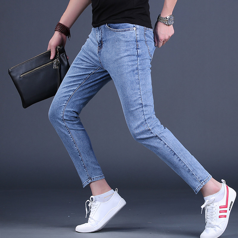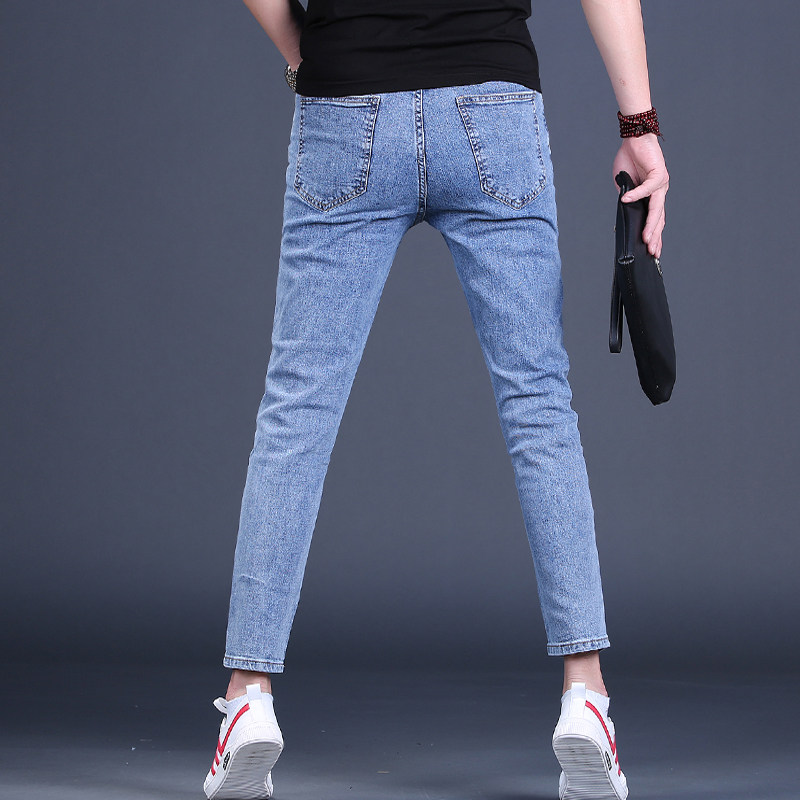 夏季牛仔裤男九分裤潮牌修身小脚浅色9分男士休闲裤潮流薄款男裤