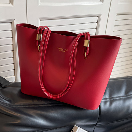 红色包包女士2025新款高级感单肩大容量婚包爆款托特包结婚新娘包