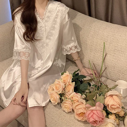 桑蚕丝真丝睡衣女纯欲风v领花边睡裙高级感蕾丝刺绣家居服可外穿