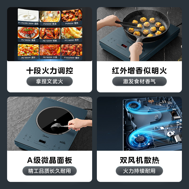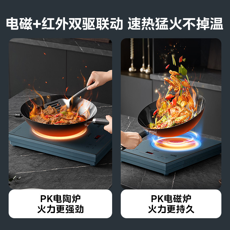 美的电磁炉2025新款家用小型大功率火锅爆炒猛火灶电陶炉煮茶炉