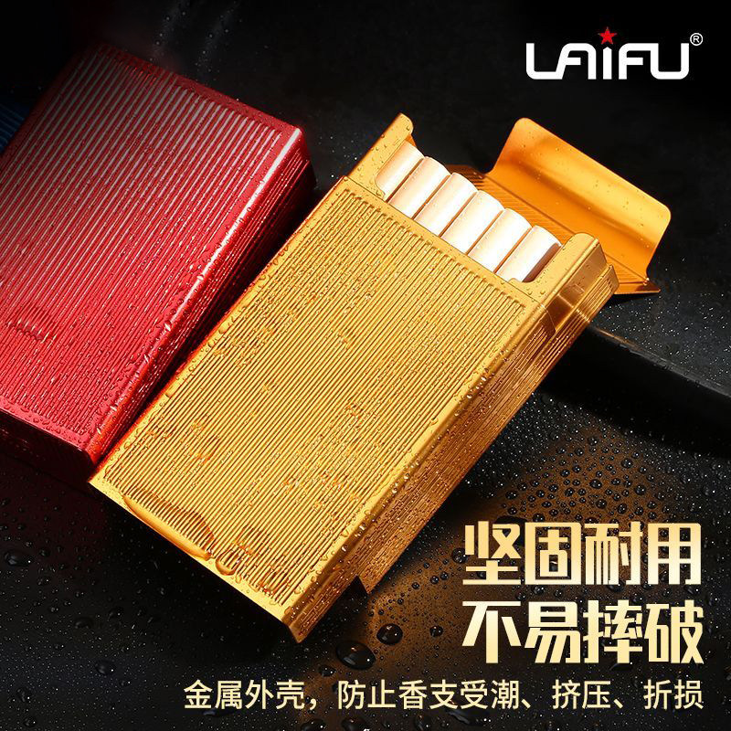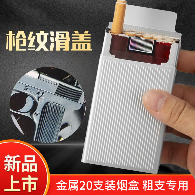 枪纹滑盖自动烟盒20支装粗支软硬包烟套便携男高档铝合金防压空盒