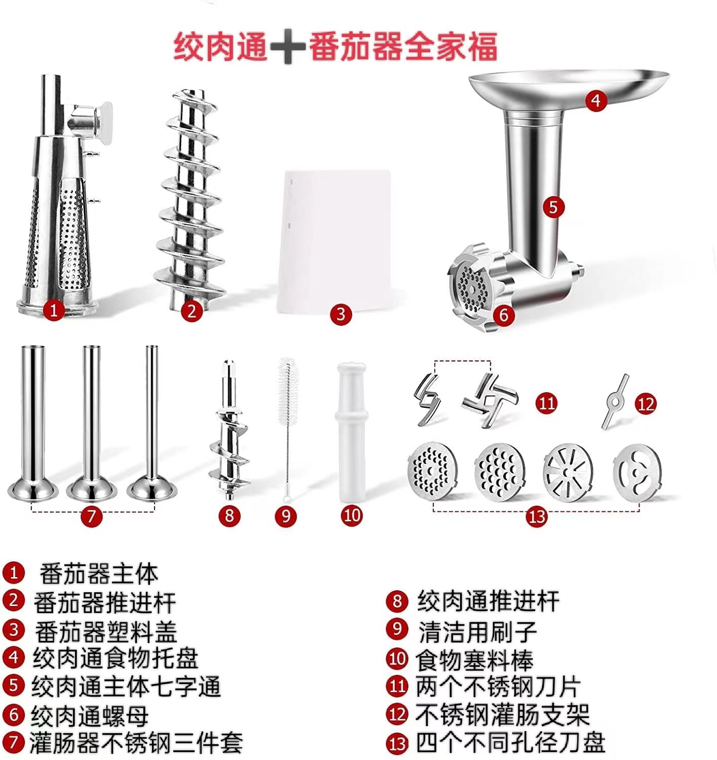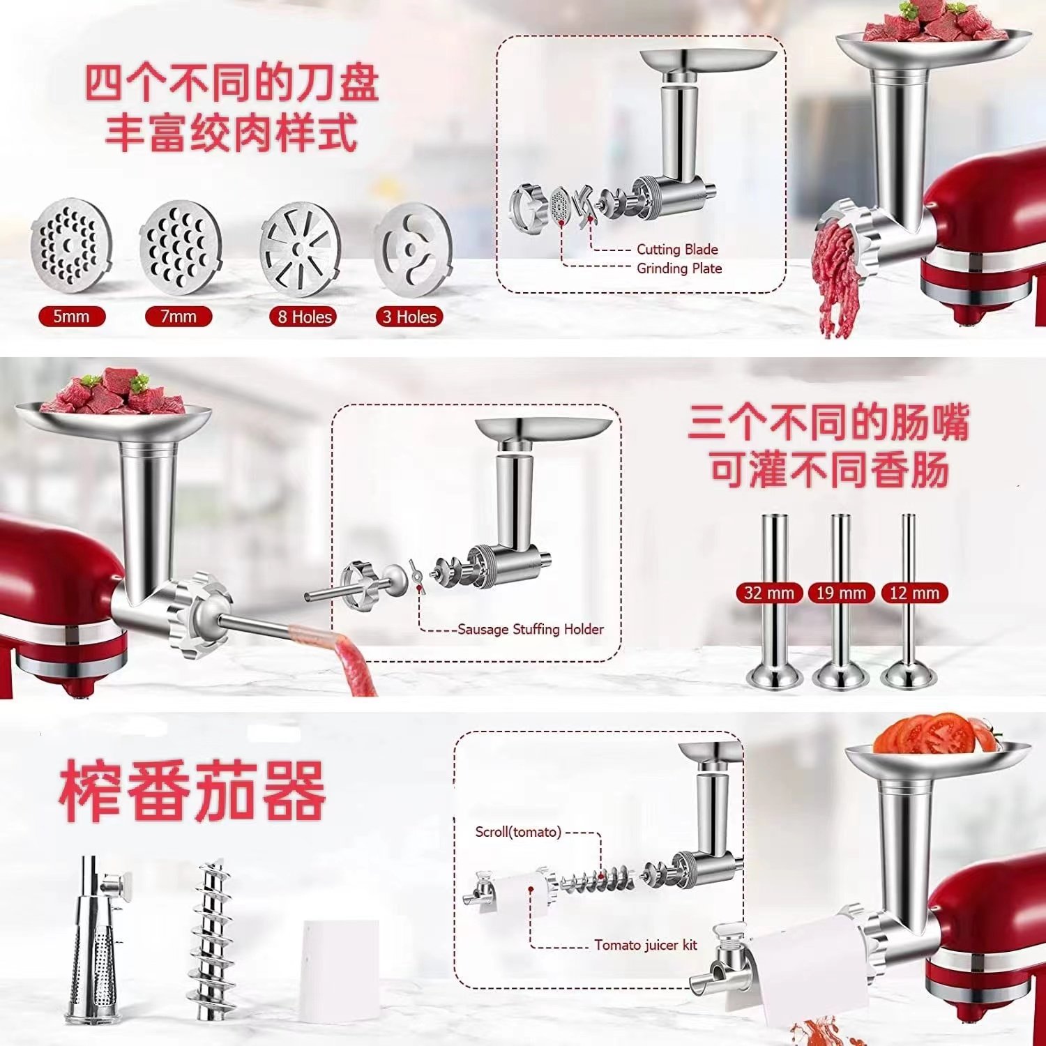 KitchenAid压面配件凯膳怡厨师机KA厨宝不锈钢绞肉灌香肠工具套装