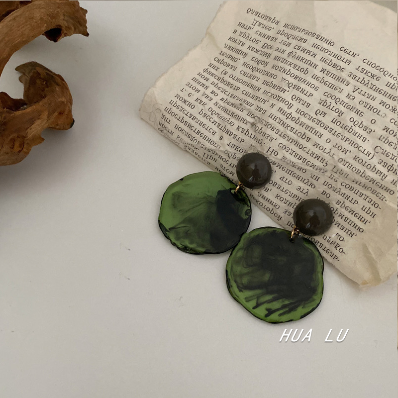 HUALU-港片绿雾 法式圆形亚克力港风复古显脸小耳环蚊香盘耳夹女